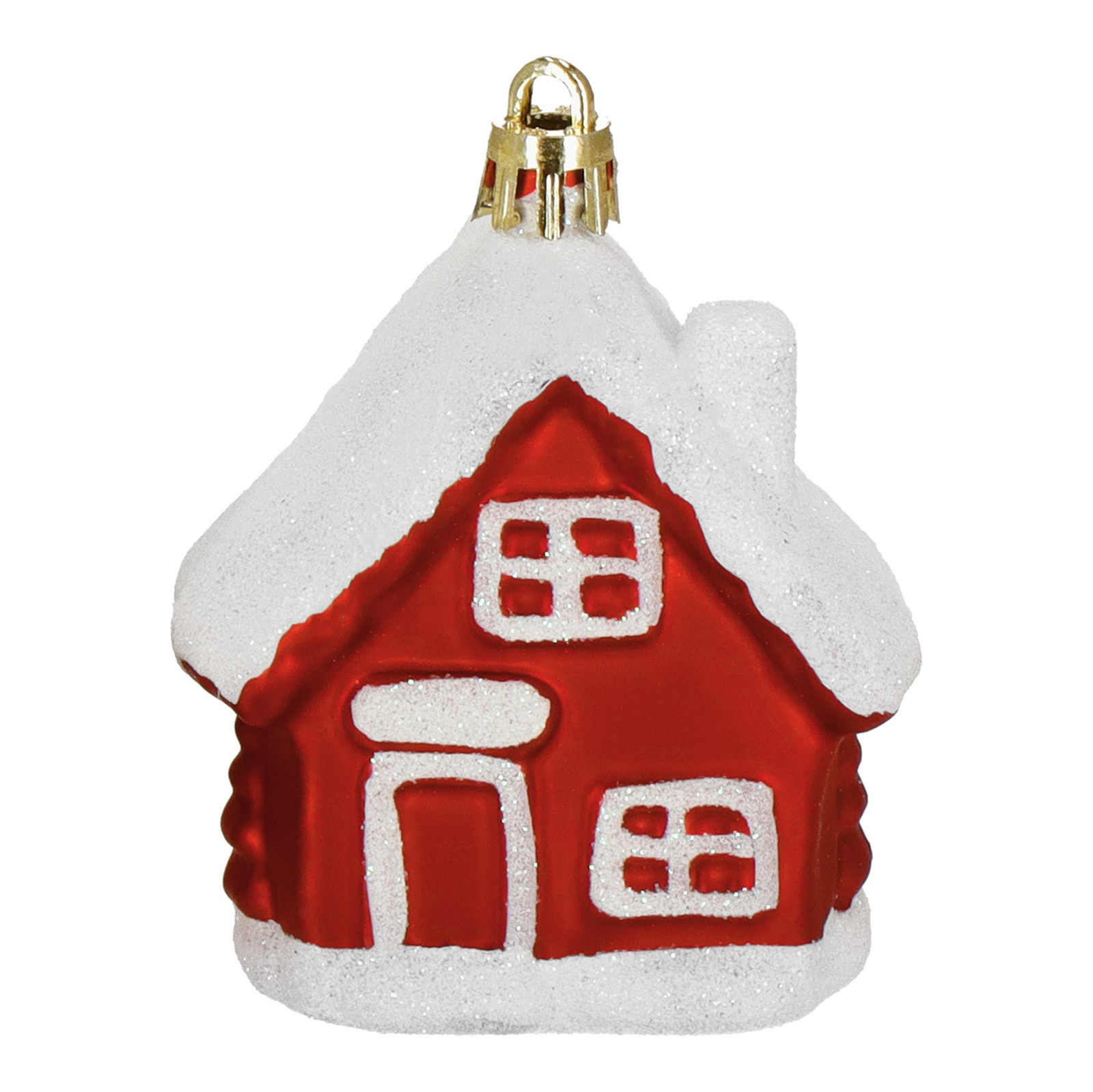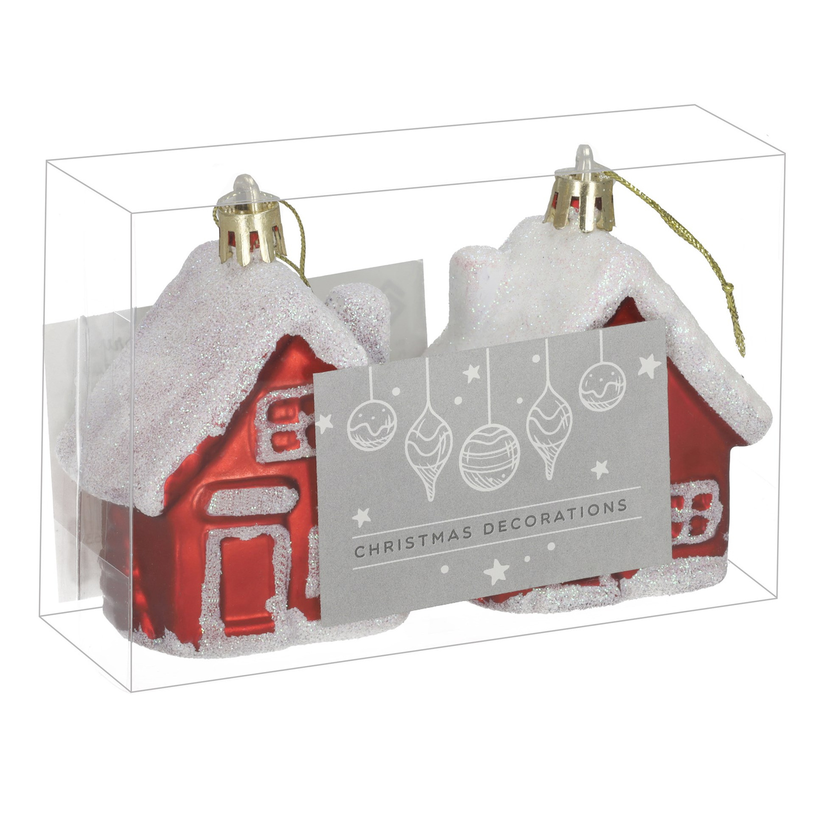 Bombki choinkowe, domki, dekoracje świąteczne do stroika, zestaw 2 szt. czerwone