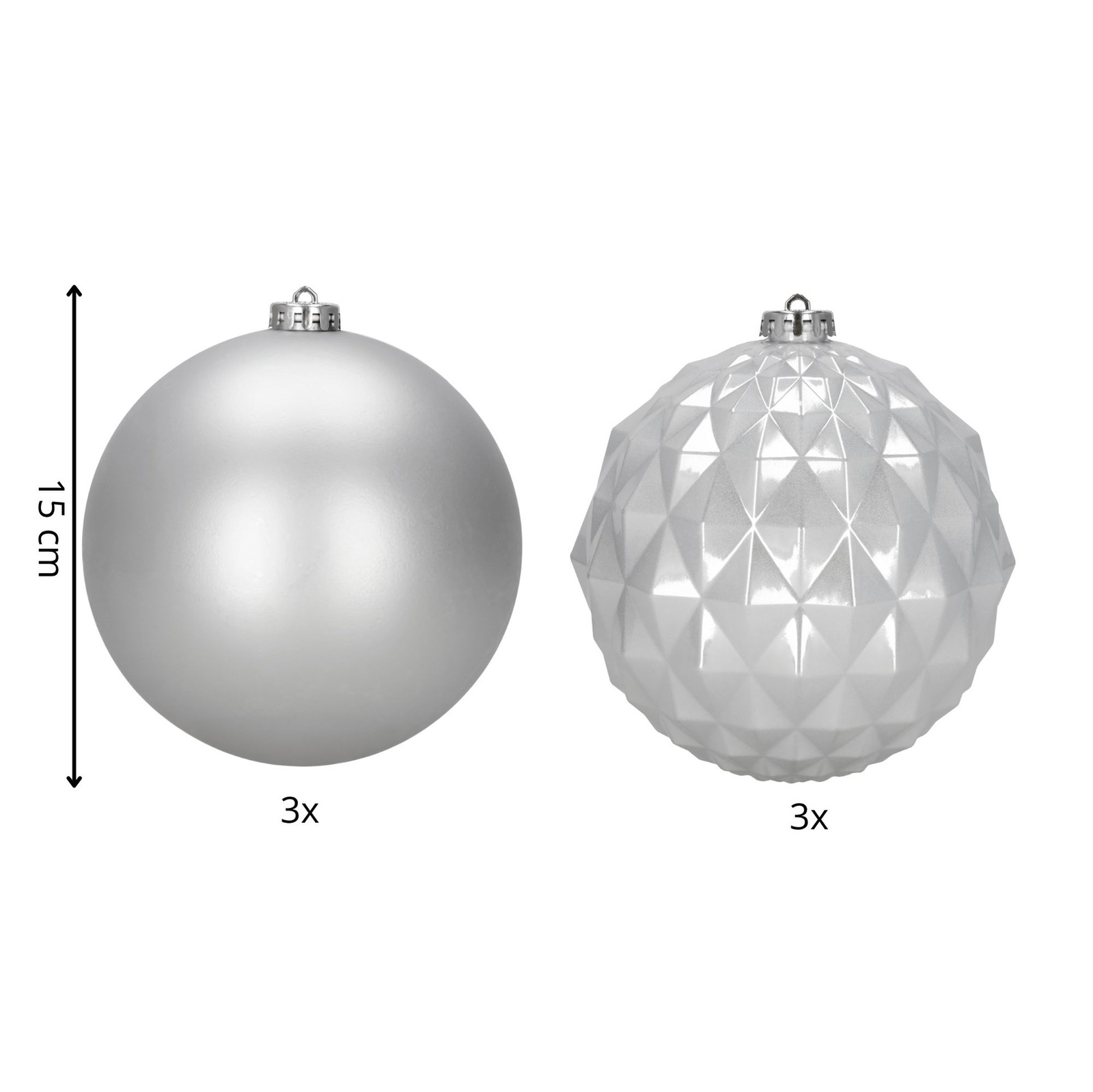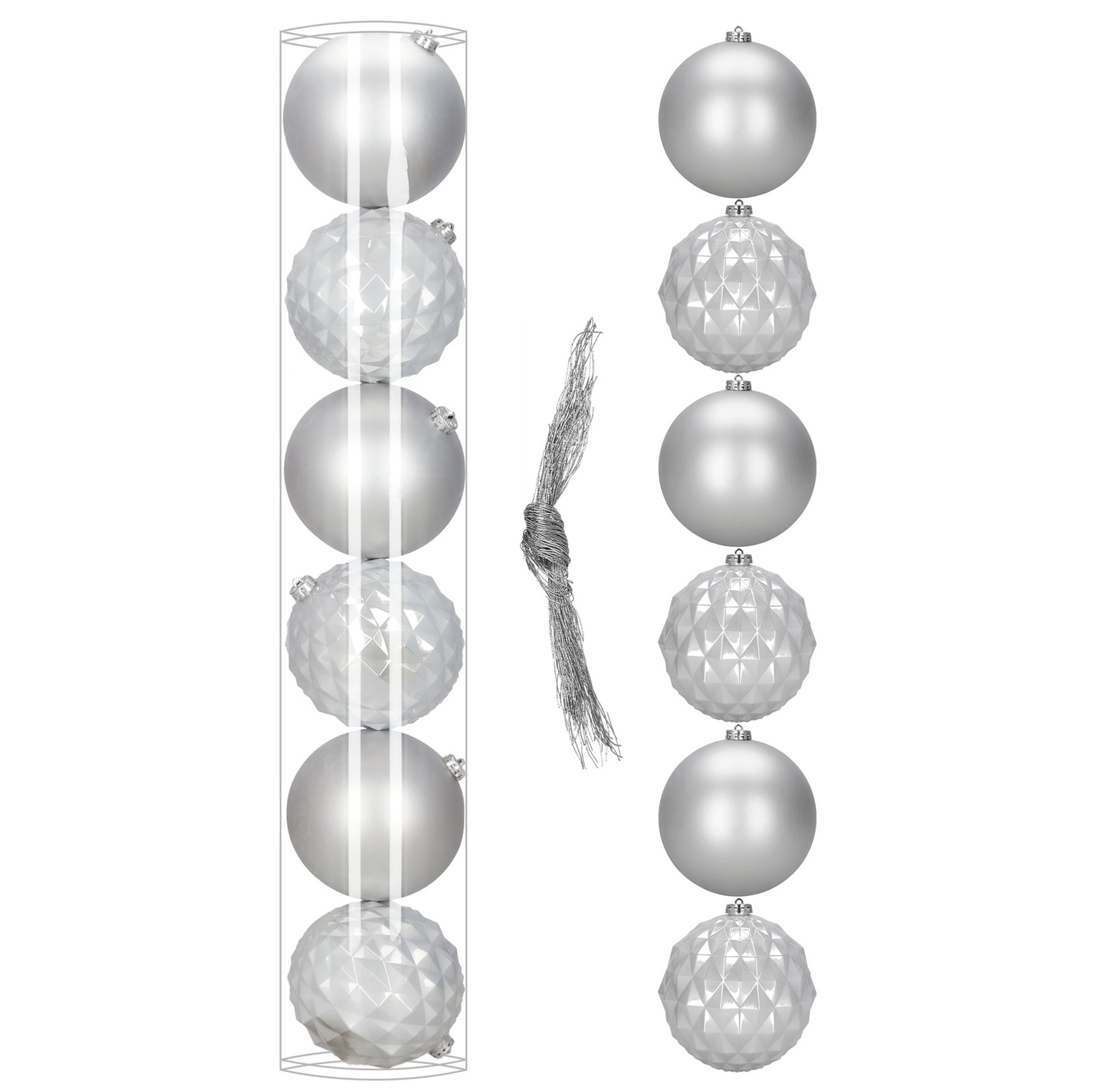 Bombki choinkowe, nietłukące 6 szt. dekoracje świąteczne 15 cm srebrne