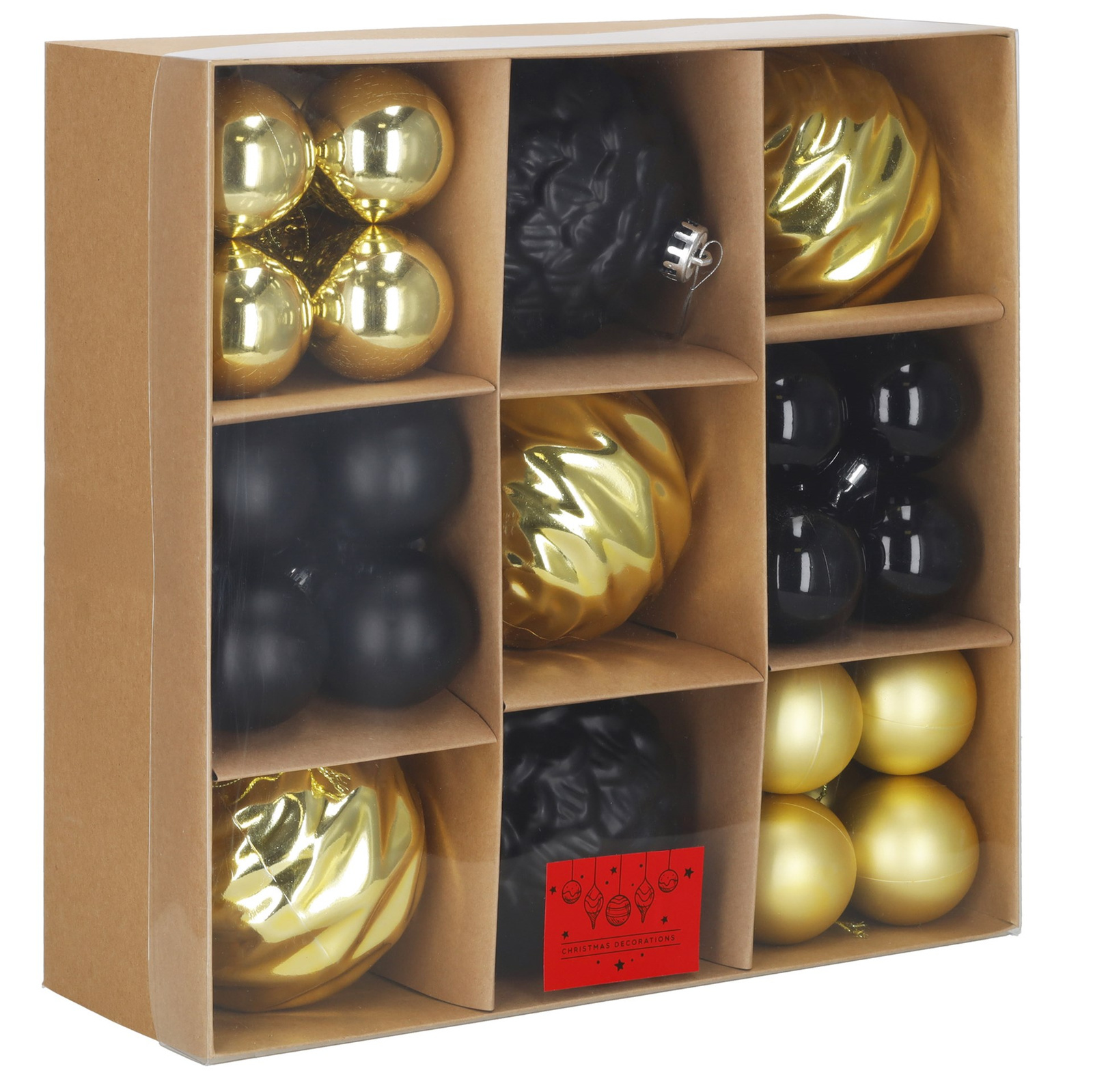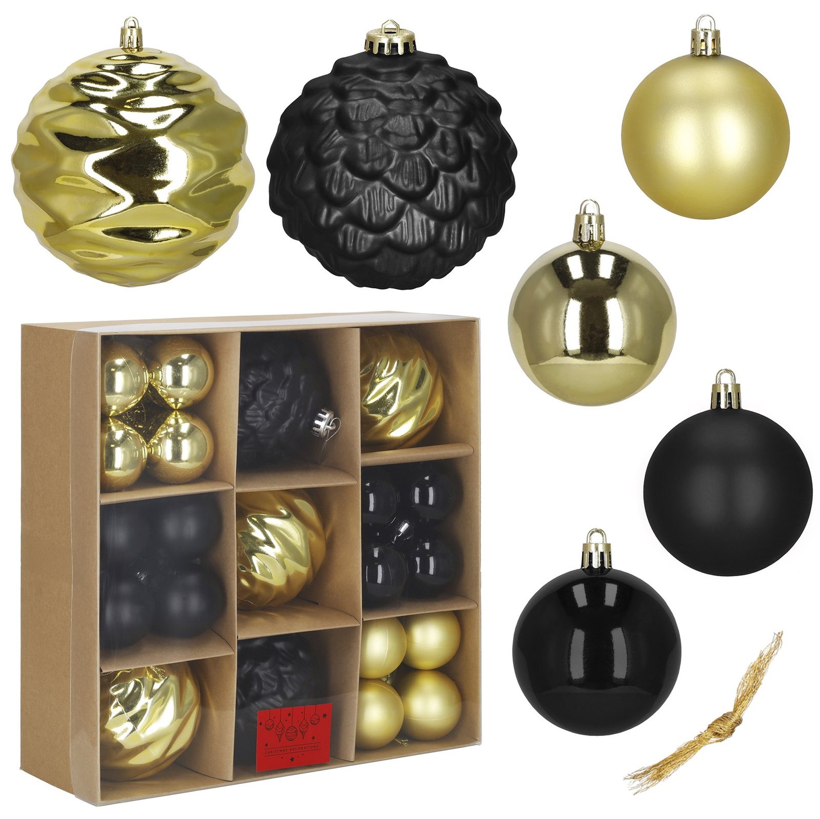 Bombki choinkowe, zestaw 37 szt. dekoracji do stroika, nietłukące złoto-czarne