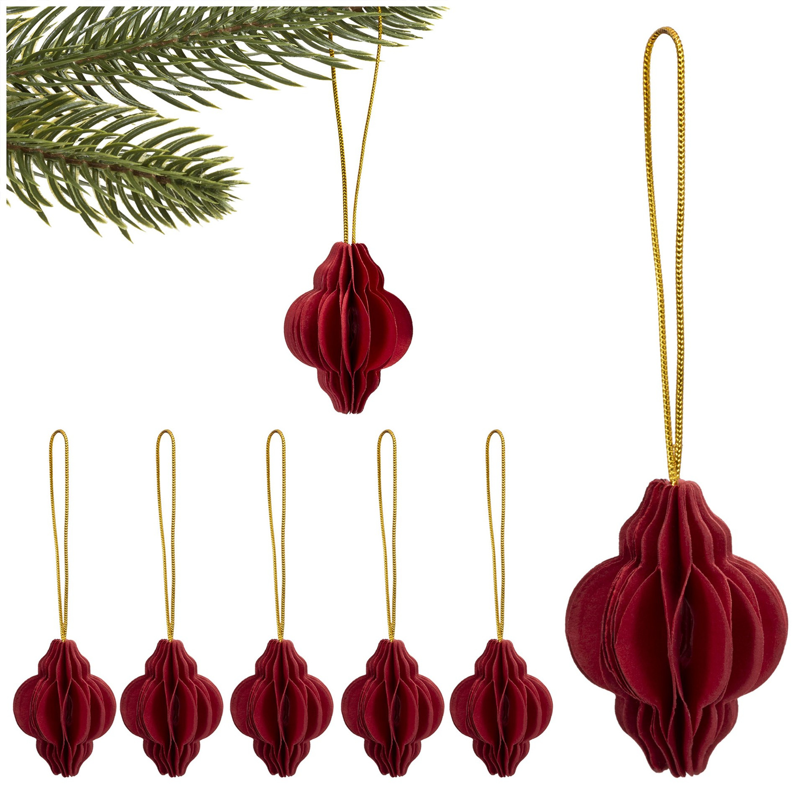 Bombki z papieru 6 szt. ozdoby choinkowe zawieszki świąteczne 4 cm rozkładane bordowe