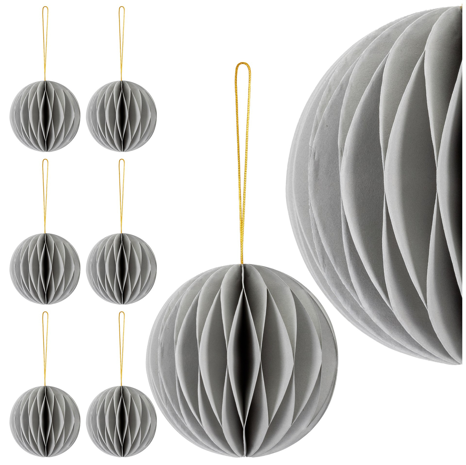 Bombki z papieru 6 szt. ozdoby choinkowe zawieszki świąteczne 8 cm rozkładane, szary