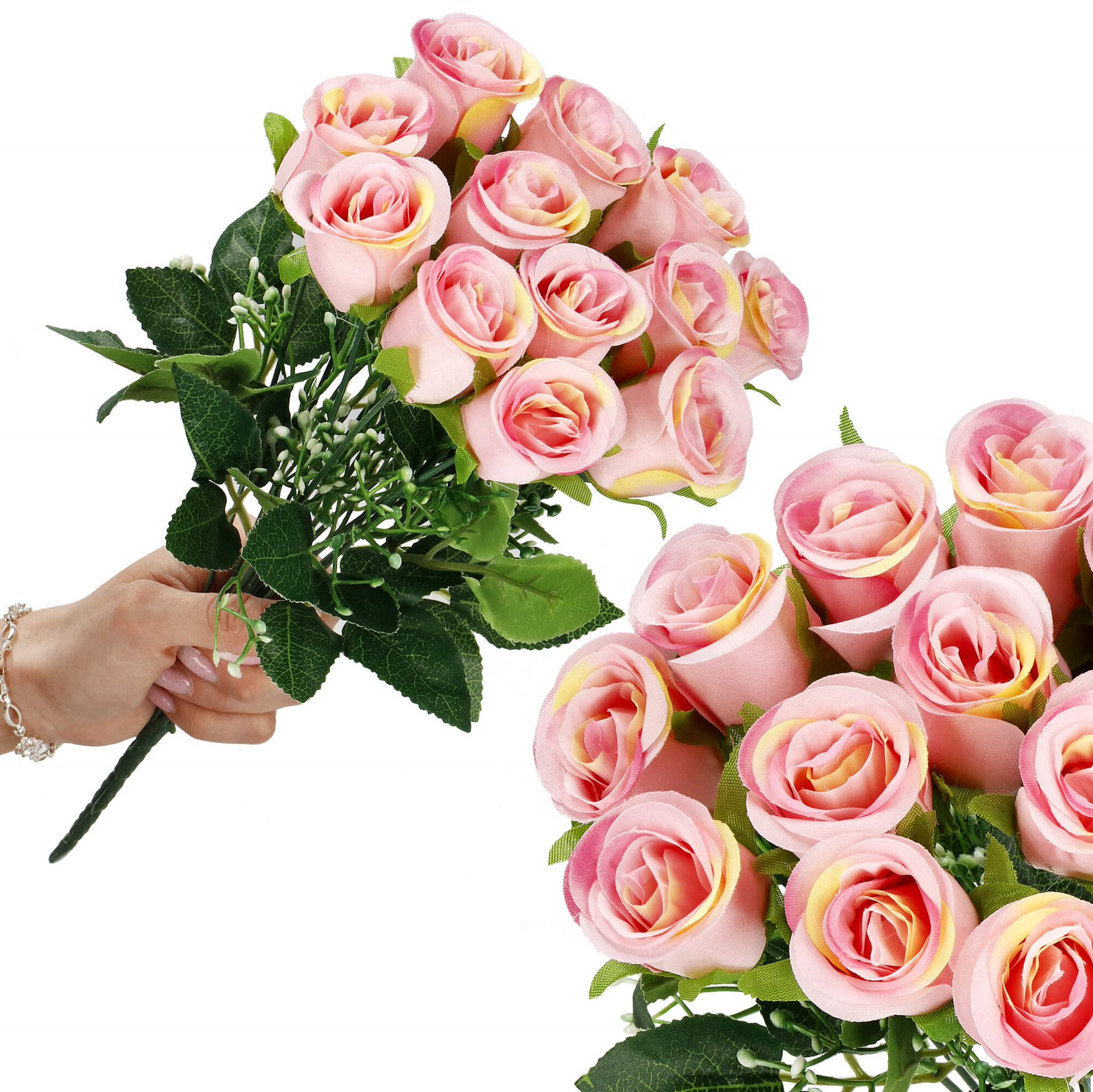 Bukiet sztucznych róż 12 kwiatów dekoracyjne różowe