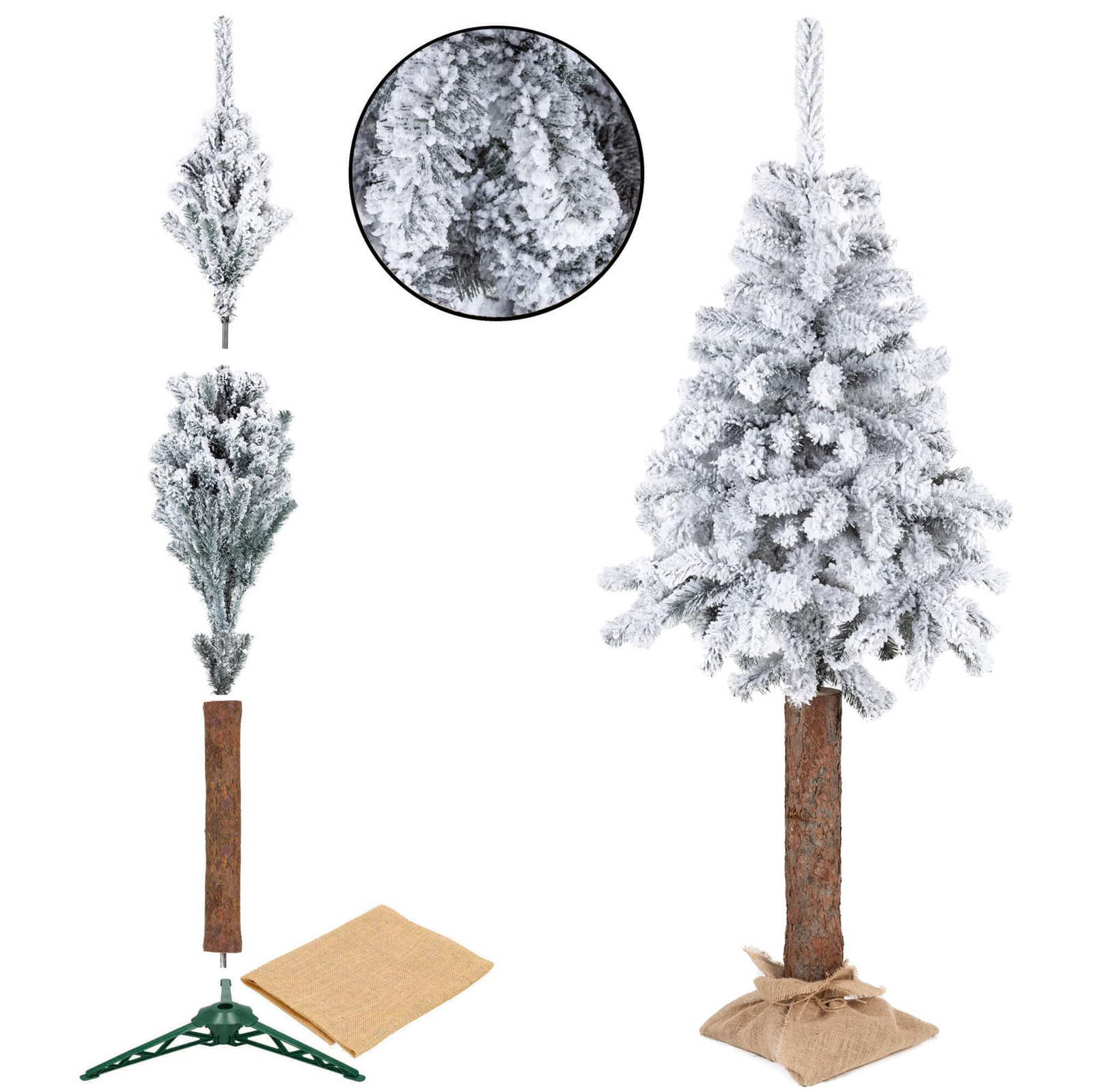 Choinka na pniu jak żywa 180 cm sztuczny świerk śnieżony jak żywy, ze stojakiem