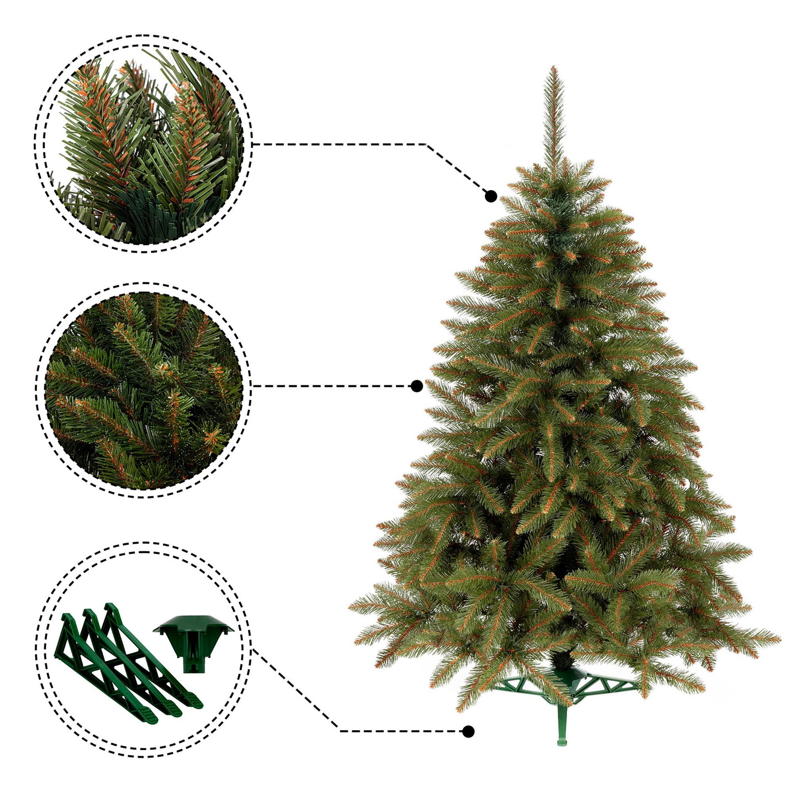 Choinka od marki Springos została wykonana z najlepszych jakościowo materiałów. Drzewko mierzące 120 cm posiada bujną koronę o pięknym, regularnym kształcie. Swój naturalny wygląd drzewko zawdzięcza stożkowemu kształtowi pniu oraz realistycznym końcówkom gałązek. Jest to połączenie tradycji z innowacyjnością, dzięki czemu drzewko idealnie wygląda w praktycznie każdym wnętrzu. Odpowiednia średnica gałązek zapobiega uginaniu się ich pod ciężarem ozdób. Elementem dekoracyjnym drzewka są wspaniale poprowadzone gałązki. Świąteczne drzewko świetnie będzie się prezentować zarówno w domowych warunkach, jak i w biurze, restauracji czy przed wejściem do mieszkania.