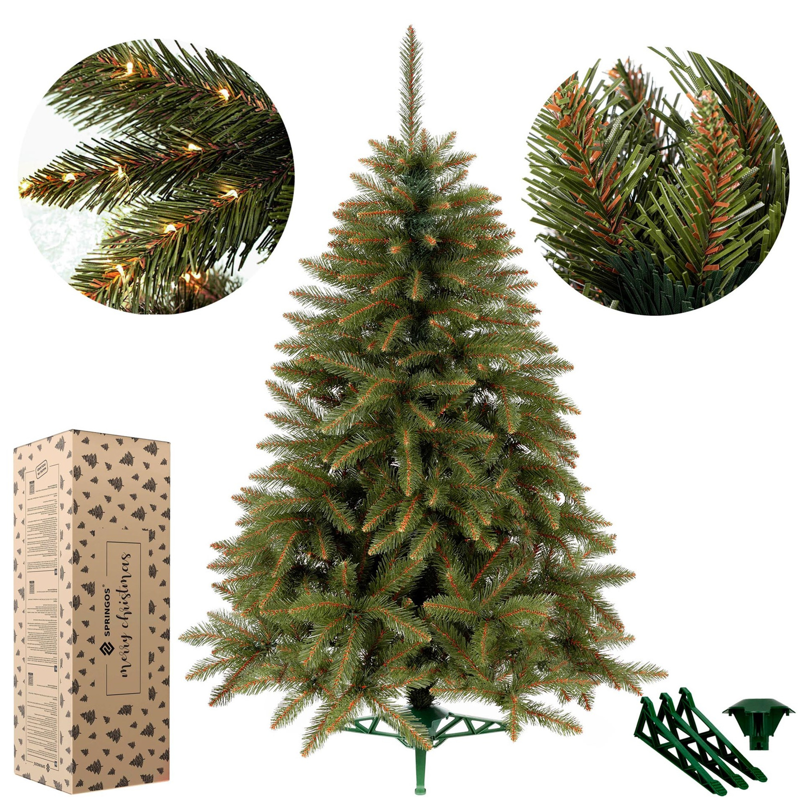 Stabilność choinki zapewniona jest dzięki dołączonemu stojakowi, którego wielkość dopasowana jest indywidualnie do rozmiaru choinki. Dużą zaletą podstawy jest jej montaż. Wystarczy wsunąć nóżki w specjalnie przystosowane do tego żłobienia. Po złożeniu stojak zajmuje niewiele miejsca, więc jego przechowywanie nie stanowi problemu. Stylowa choinka od firmy Springos zapakowana została w wytrzymałe pudełko, które idealnie nadaje się do przechowywania drzewka, chroniąc je przed światłem oraz kurzem. Dzięki czemu choinka bożonarodzeniowa zawsze będzie świeża i zielona.