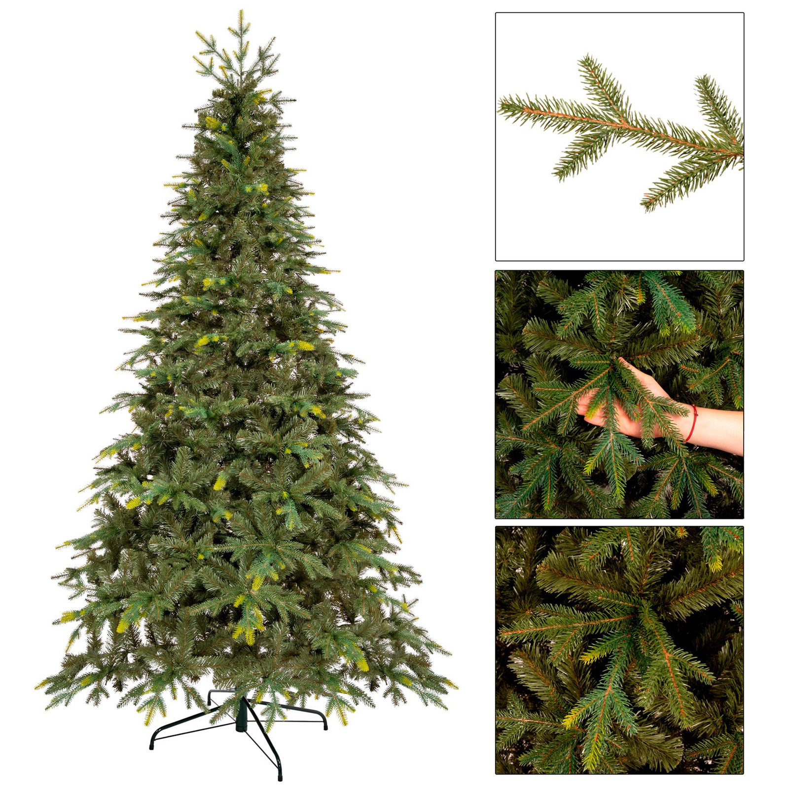 Choinka sztuczna jak żywa 240 cm świerk naturalny ze stojakiem nowoczesny gęsty