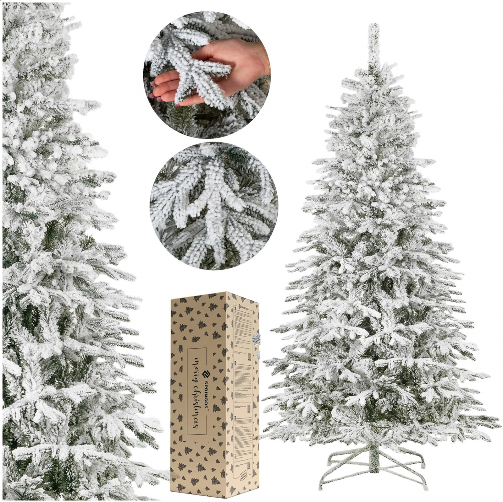 Choinka od marki Springos została wykonana z najlepszych jakościowo materiałów. Drzewko mierzące 250 cm posiada bujną koronę o pięknym, regularnym kształcie. Swój naturalny wygląd drzewko zawdzięcza realistycznym końcówkom gałązek. Jest to połączenie tradycji z innowacyjnością, dzięki czemu drzewko idealnie wygląda w praktycznie każdym wnętrzu. Odpowiednia średnica gałązek zapobiega uginaniu się ich pod ciężarem ozdób. Elementem dekoracyjnym drzewka jest jej ośnieżenie. Świąteczne drzewko świetnie będzie się prezentować zarówno w domowych warunkach, jak i w biurze, restauracji czy przed wejściem do mieszkania.