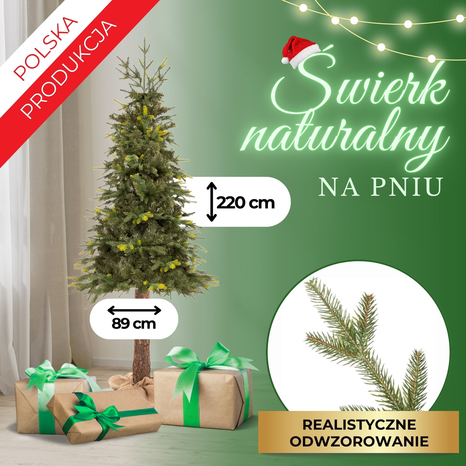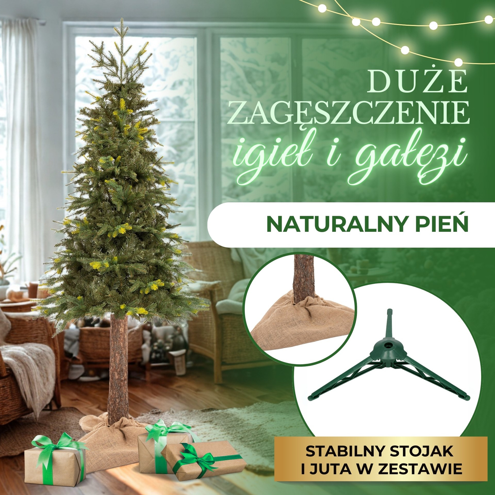Choinka sztuczna na pniu jak żywa 220 cm świerk naturalny gęsta nowoczesna