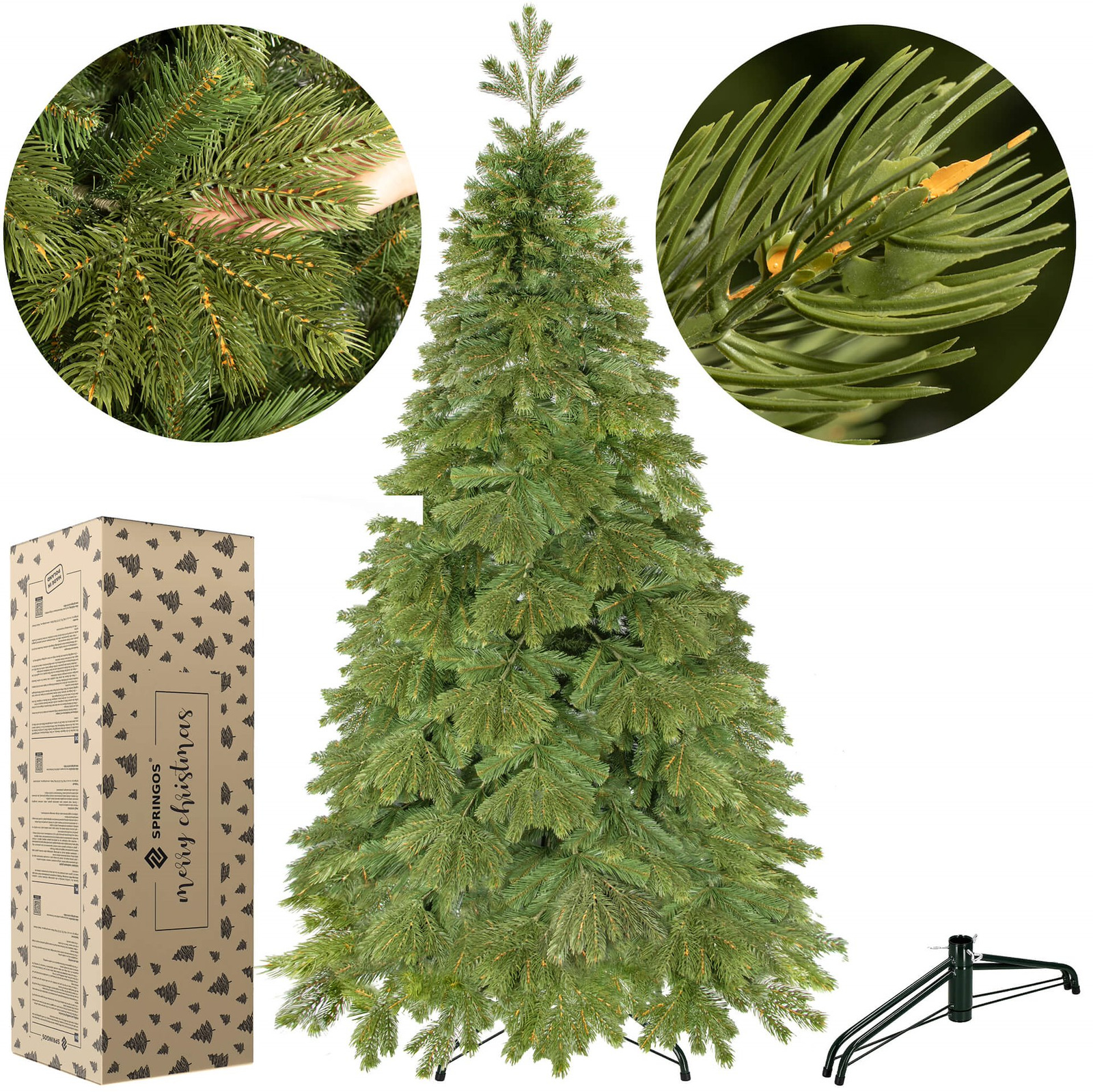 Choinka od marki Springos została wykonana z najlepszych jakościowo materiałów. Drzewko mierzące 220 cm posiada bujną koronę o pięknym, regularnym kształcie. Swój naturalny wygląd drzewko zawdzięcza stożkowemu kształtowi pniu oraz realistycznym końcówkom gałązek. Jest to połączenie tradycji z innowacyjnością, dzięki czemu drzewko idealnie wygląda w praktycznie każdym wnętrzu. Odpowiednia średnica gałązek zapobiega uginaniu się ich pod ciężarem ozdób. Elementem dekoracyjnym drzewka są wspaniale poprowadzone gałązki zakończone szronieniem oraz naturalne szyszki. Świąteczne drzewko świetnie będzie się prezentować zarówno w domowych warunkach, jak i w biurze, restauracji czy przed wejściem do mieszkania.