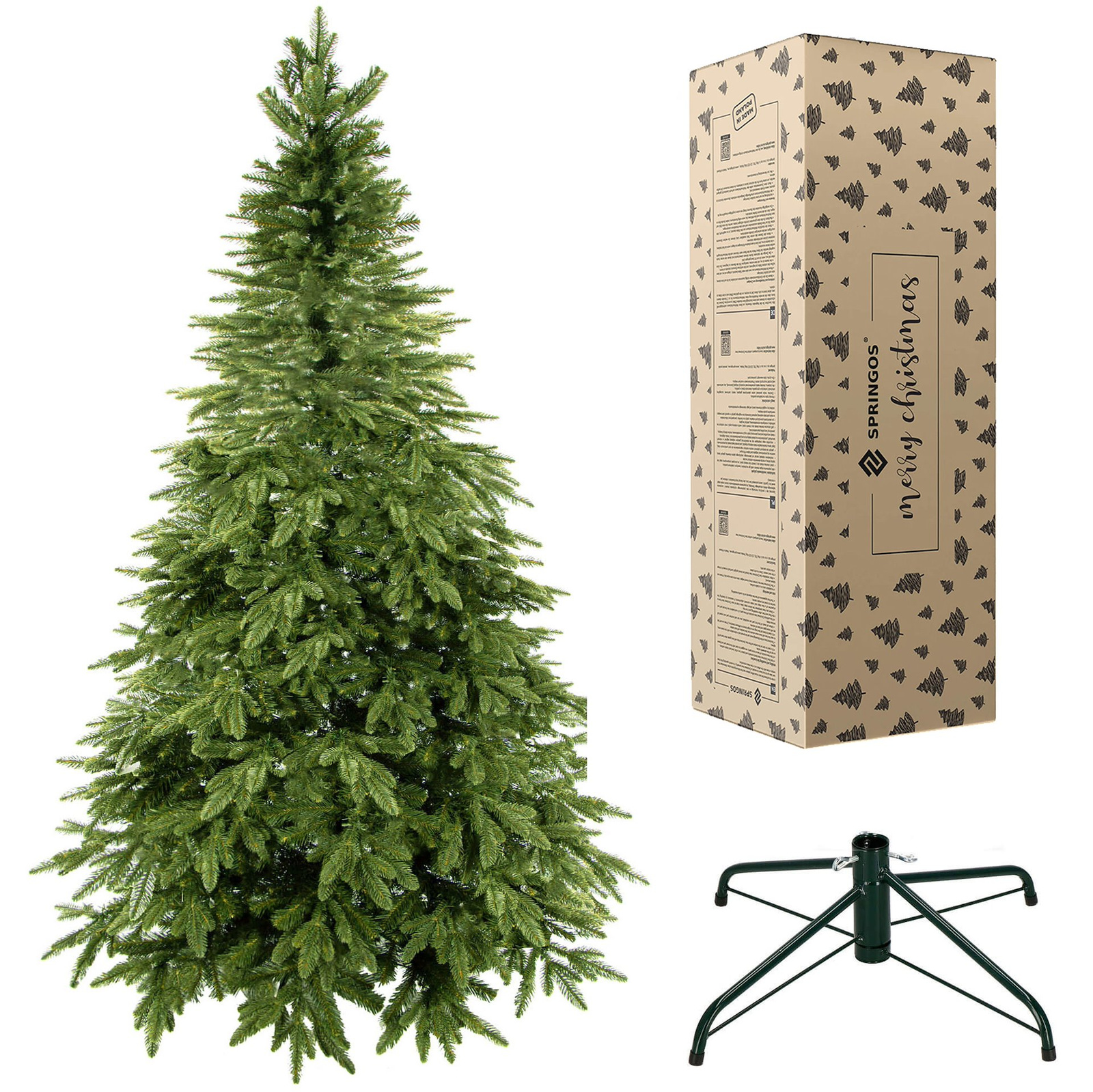 Choinka od marki Springos została wykonana z najlepszych jakościowo materiałów. Drzewko mierzące 220 cm posiada bujną koronę o pięknym, zachwycającym kształcie. Odpowiednia średnica gałązek zapobiega uginaniu się ozdób pod ich ciężarem. Świąteczne drzewko świetnie będzie się prezentować zarówno w domowych warunkach, jak i w biurze, restauracji czy przed wejściem do mieszkania. Stabilność choinki zapewniona jest dzięki dołączonemu stojakowi, którego wielkość dopasowana jest indywidualnie do rozmiaru choinki. Dużą zaletą podstawy jest jej montaż. Wystarczy wsunąć nóżki w specjalnie przystosowane do tego żłobienia. Dodatkowo choinka po złożeniu zajmuje niewiele miejsca, więc jego przechowywanie nie stanowi problemu.