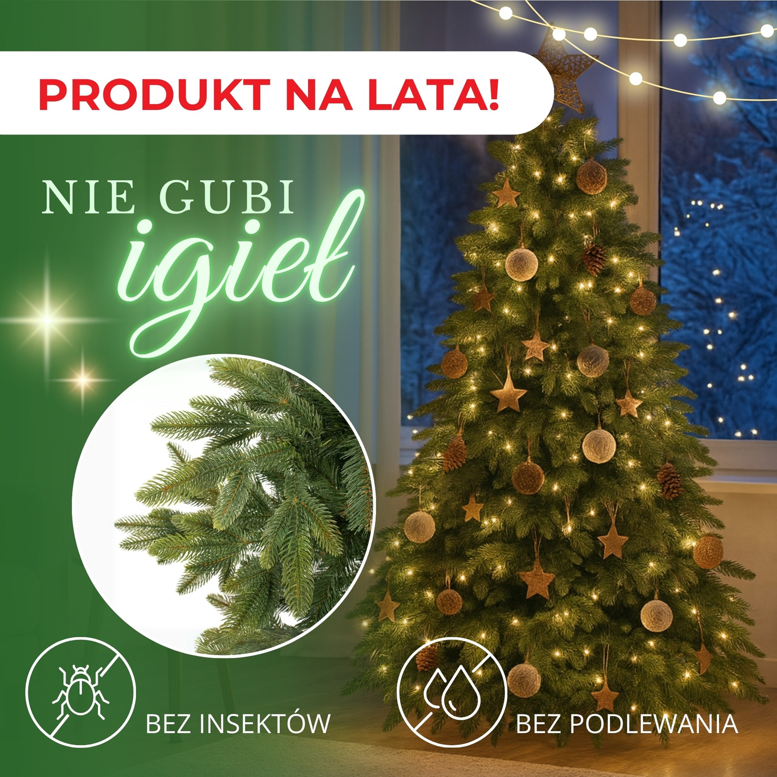 - Choinka sprzedawana bez oświetlenia i ozdób widocznych na zdjęciach aranżacyjnych.