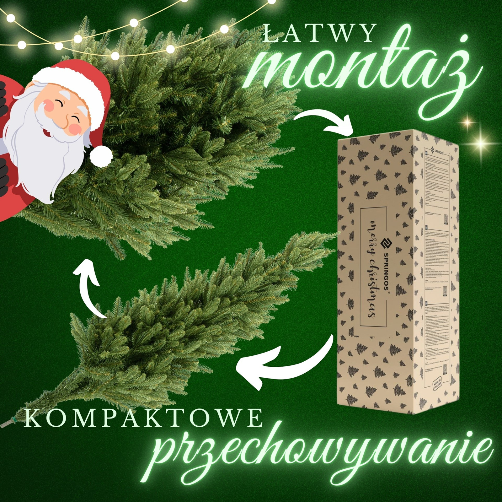 Stylowa choinka od firmy Springos zapakowana została w wytrzymałe pudełko, które idealnie nadaje się do przechowywania drzewka, chroniąc je przed światłem oraz kurzem. Dzięki temu choinka bożonarodzeniowa zawsze będzie świeża i zielona.
