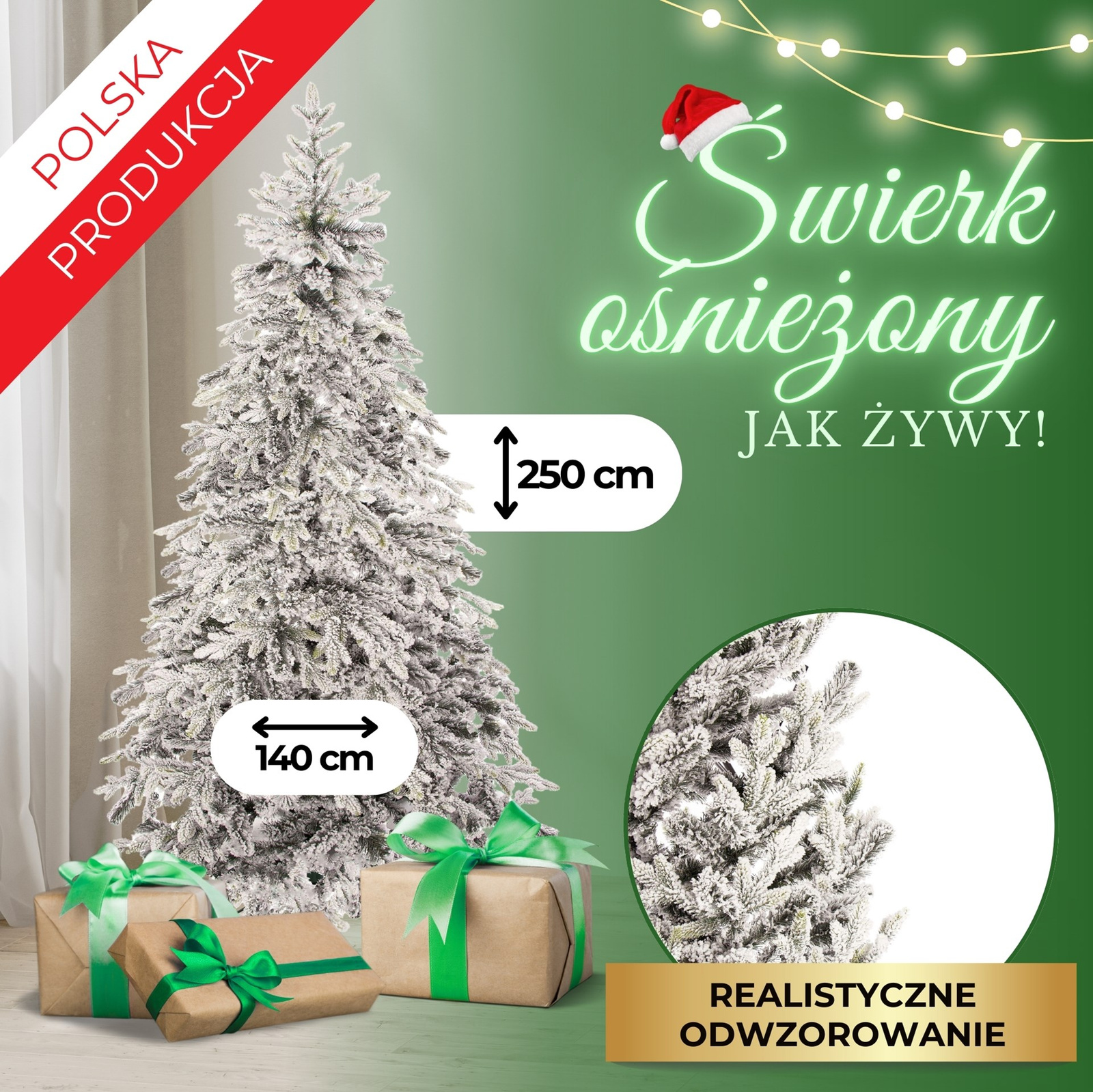Choinka sztuczna premium 250 cm świerk ośnieżony drzewko bożonarodzeniowe PE