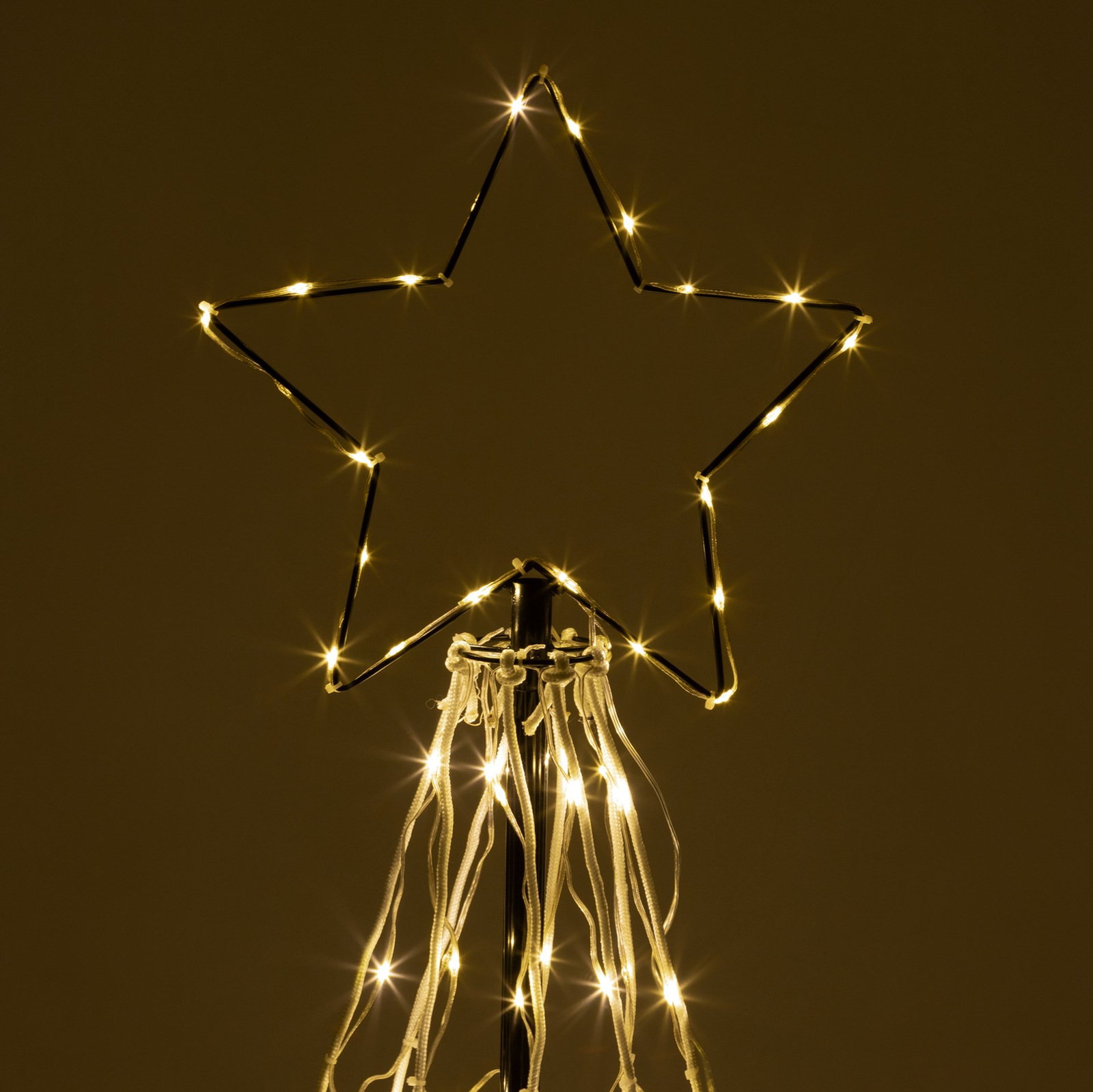 - Choinka składa się z ośmiu sznurków, pomiędzy którymi rozmieszczone są przewody LED, tworzące oświetlenie dekoracji