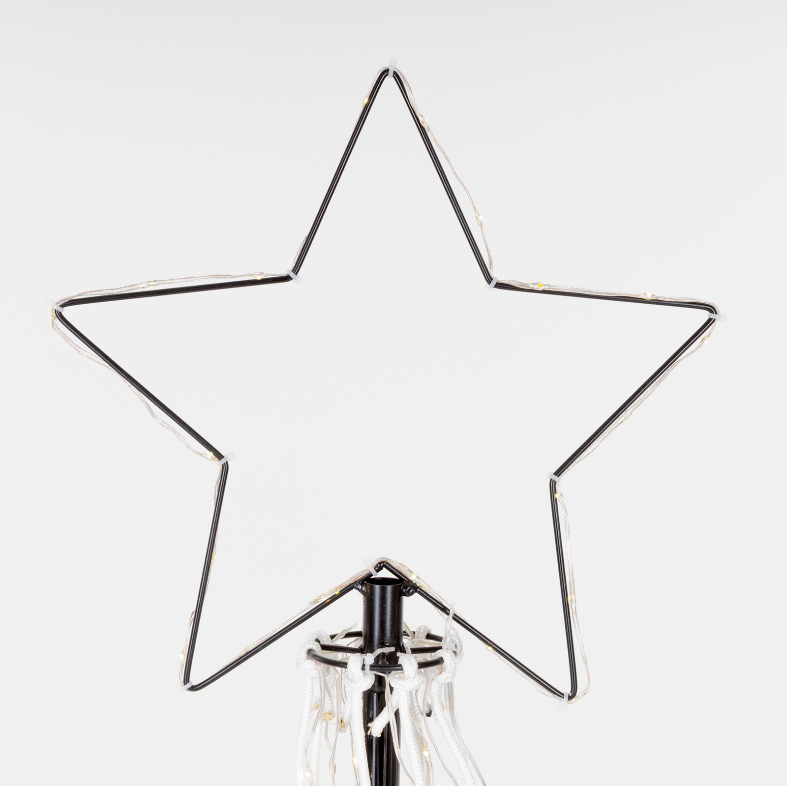 - Przewody LED są przymocowane do sznurków za pomocą opasek zaciskowych