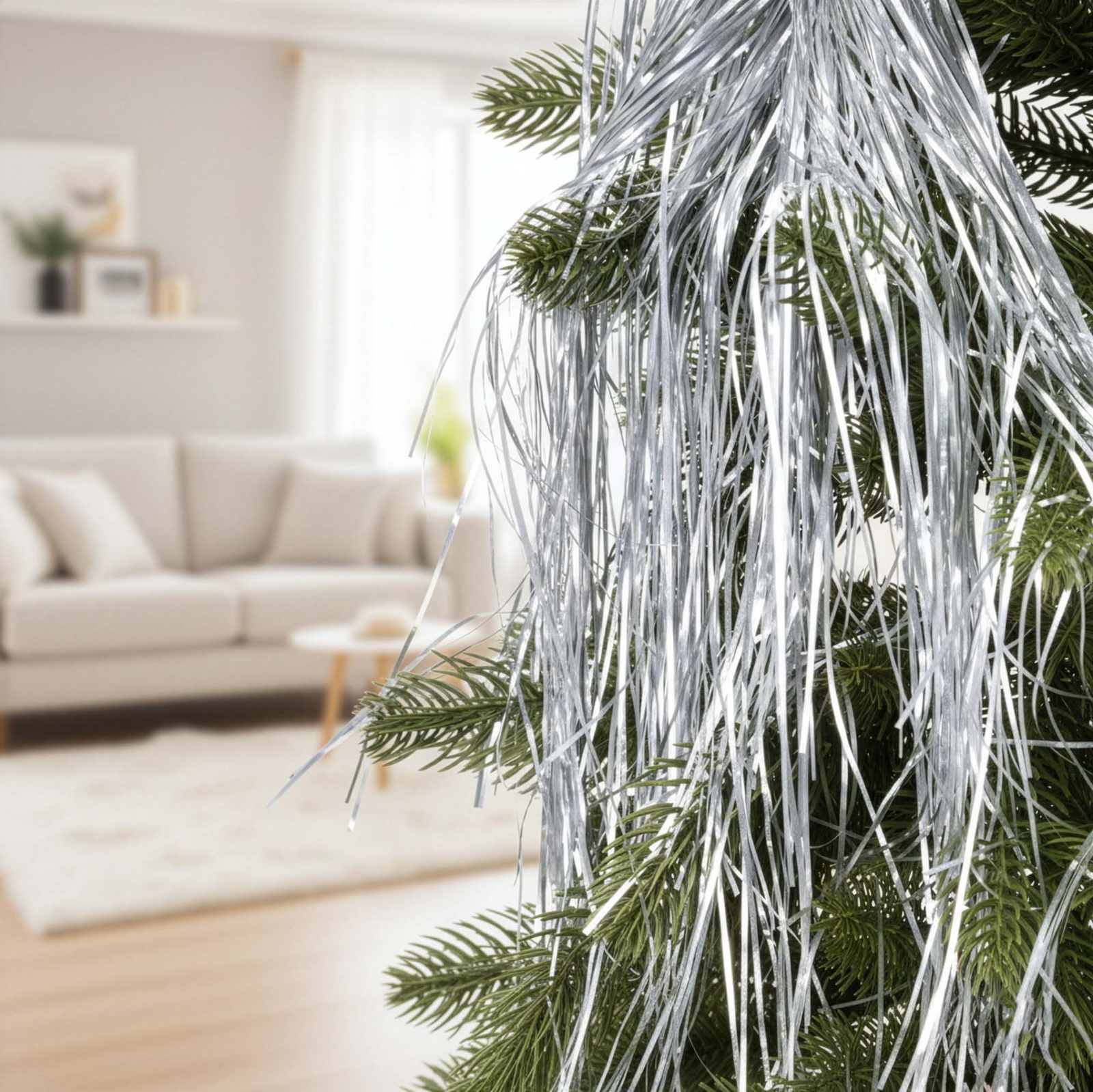 Odkryj, jak jeden detal może całkowicie odmienić wygląd Twojej choinki, dekoracja Włosy Anielskie w kolorze srebrnym i długości 100 cm wnosi elegancję i magię w jednym. Jej liczne, cienkie nici z PVC które miękko opadają pomiędzy gałęziami iglaka, tworząc wrażenie lekkości i ruchu. Srebrna barwa niesie ze sobą ciepło i tradycję, a równocześnie współgra z nowoczesnymi wnętrzami. Produkt został zaprojektowany z myślą o łatwym montażu wystarczy rozłożyć go na drzewku by uzyskać efekt pełnego blasku. Dzięki około 120 nitkom dekoracja zapełnia przestrzeń dekoracyjną w sposób efektowny, nie przytłaczając. Materiał PVC zapewnia odporność na odkształcenia i utrzymanie formy przez kolejne święta. Ta dekoracja świetnie sprawdzi się samodzielnie albo w towarzystwie klasycznych bombek i światełek, tworząc harmonijną całość. Możesz ją także zastosować w mniej oczywistych miejscach na przykład zawiesić w oknie, na balustradzie albo jako ozdobę ściany w strefie wypoczynku. Wprowadź do domu tę srebrną nić, aby oddać niepowtarzalny klimat świąt i podkreślić wyjątkowość chwili. Umożliwia subtelne i jednocześnie spektakularne udekorowanie przestrzeni, bez potrzeby stosowania dużej ilości dodatków. Dzięki tak prostemu zabiegowi Twoje wnętrze nabierze eleganckiego charakteru i poczucia świątecznej magii. Zaproś blask, ciepło i radość w sezonie dekoracji ten szczegół może zrobić ogromną różnicę.