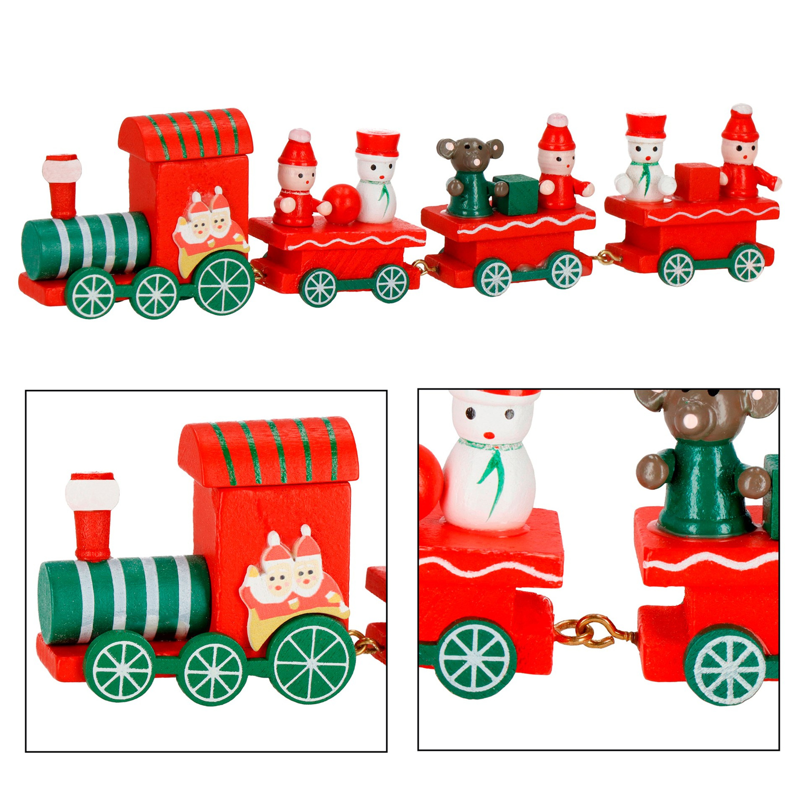 Wprowadź świąteczny nastrój do swojego domu z drewnianą ciuchcią z wagonikami. Świąteczne motywy dodadzą wnętrzu ciepła i radości. Ciuchcia idealnie nadaje się do ustawienia na półce, stole lub przy choince, stając się centralnym punktem świątecznej aranżacji. Solidna, drewniana konstrukcja zapewnia trwałość, dzięki czemu ozdoba przetrwa wiele sezonów. To wspaniała dekoracja, która wzbogaci świąteczny wystrój każdego domu. Dodatkowo, ciuchcia z wagonikami jest doskonałym pomysłem na prezentWprowadź wyjątkowy bożonarodzeniowy klimat dzięki tej drewnianej ciuchci, która z pewnością przyciągnie uwagę gości!