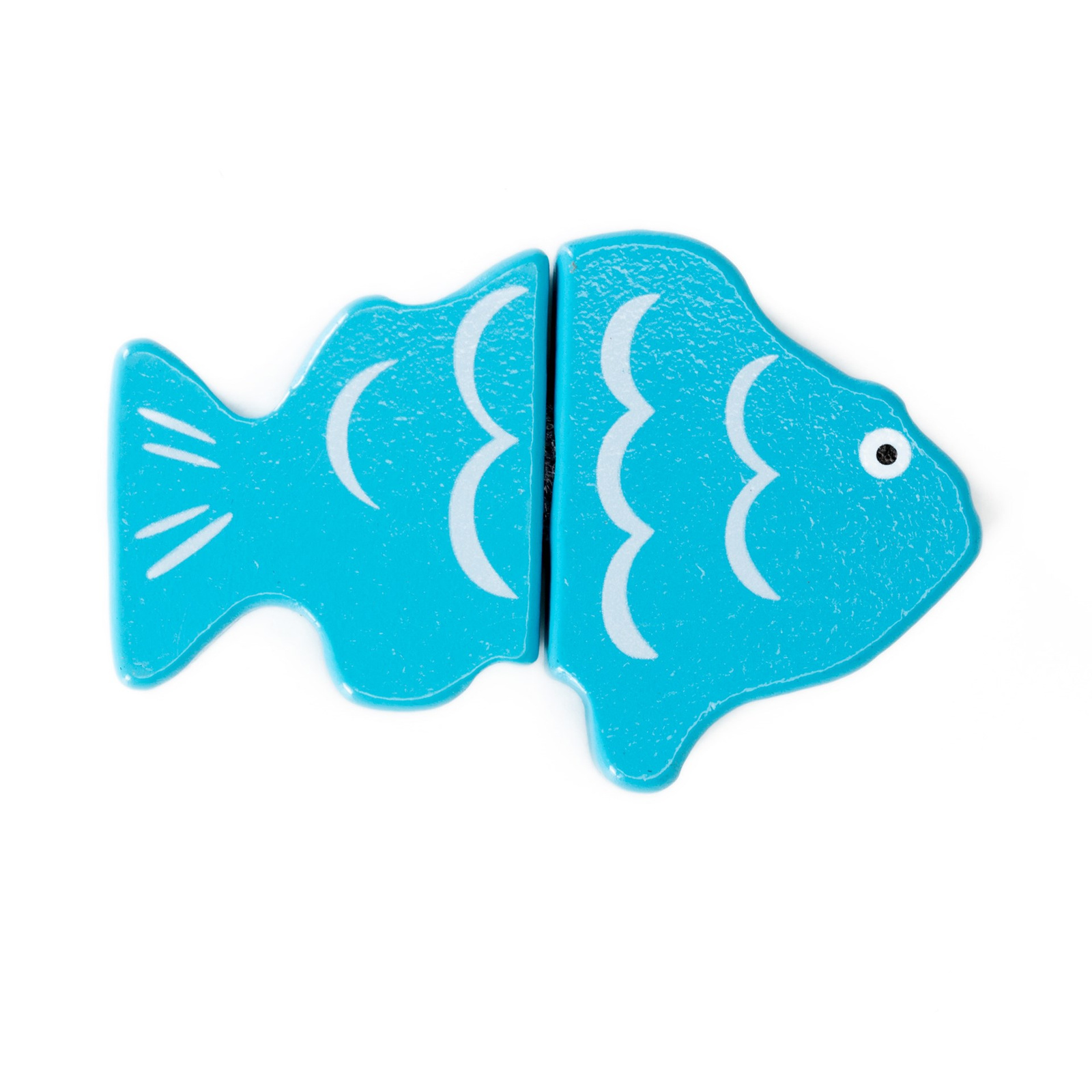 - Każdy element jest wykonany z drewnianych kawałków połączonych rzepem, dzięki czemu można je „kroić” i ponownie łączyć.