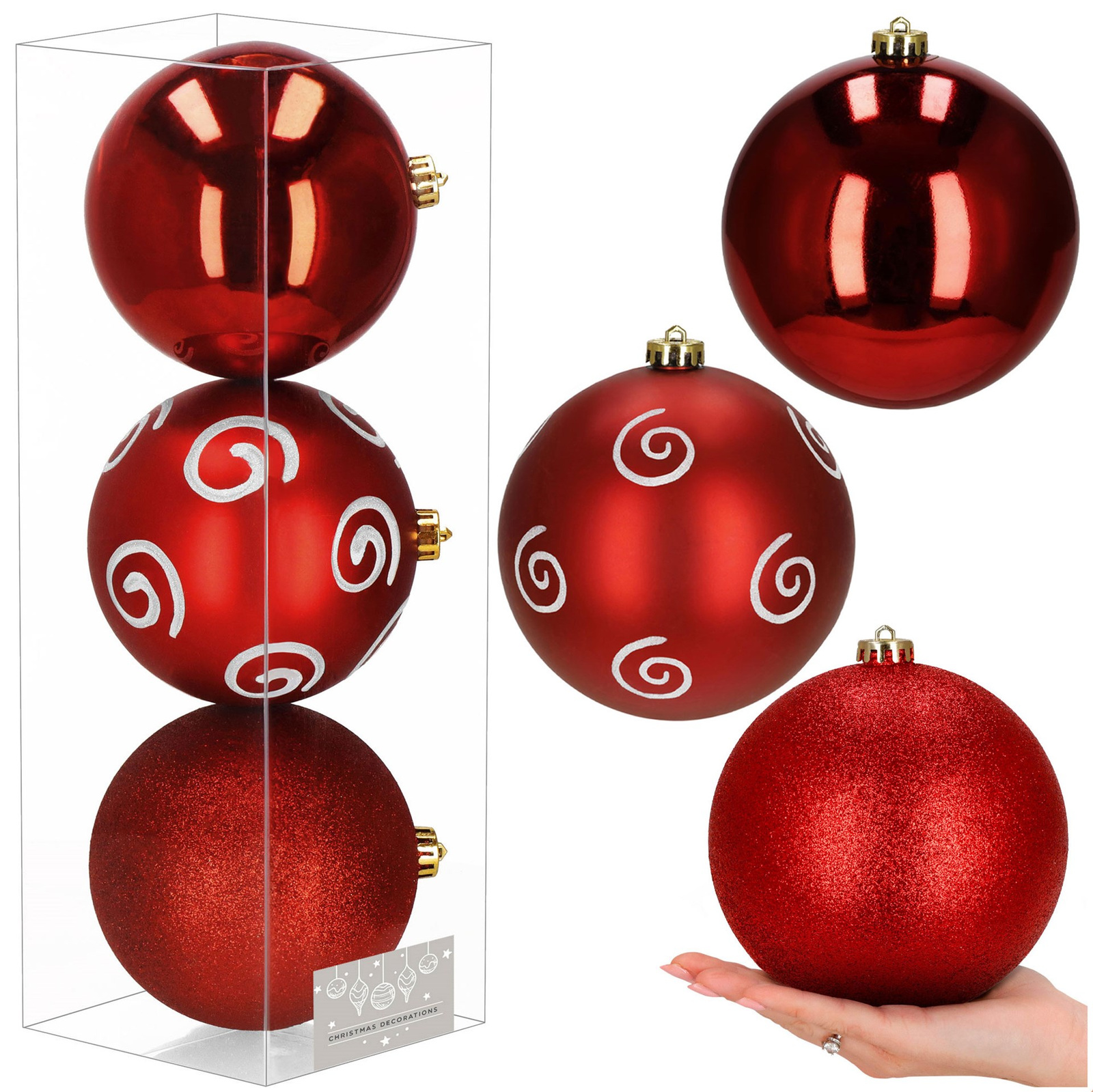 Duże bombki choinkowe 15 cm 3 szt. ozdoby świąteczne nietłukące czerwone