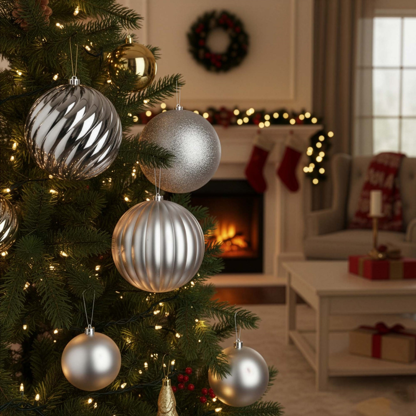 ⭐ Uniwersalny styl bombek pasuje do wielu aranżacji wnętrz od klasycznych po nowoczesne.