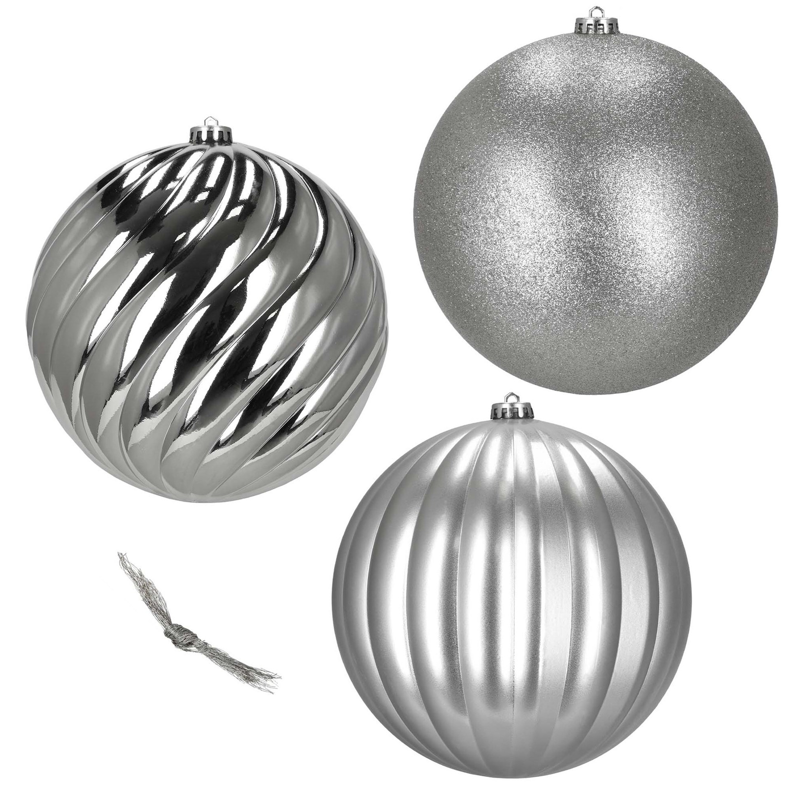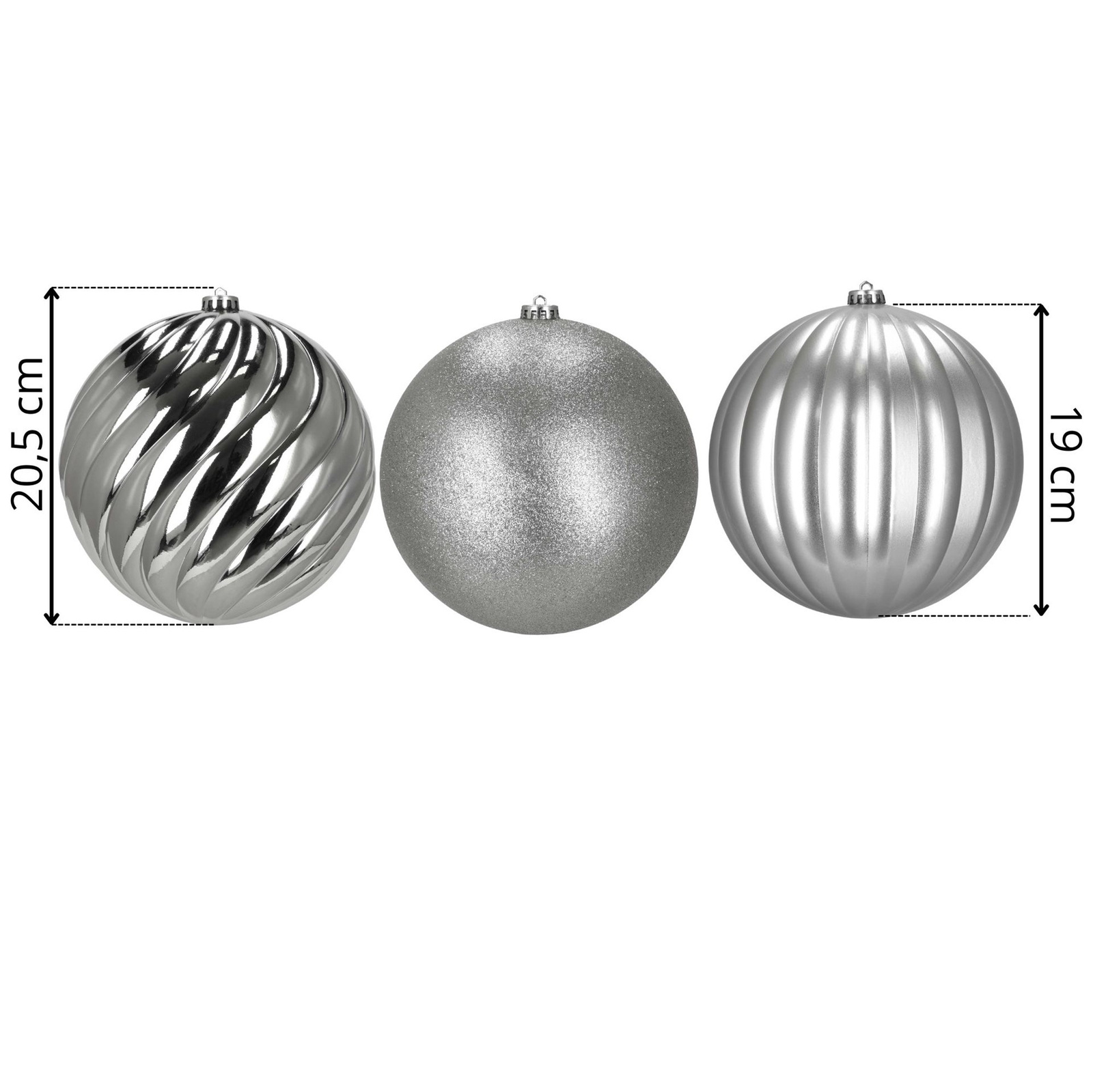 Duże bombki choinkowe 3 szt. ozdoby świąteczne 20,5 cm brokat srebrne