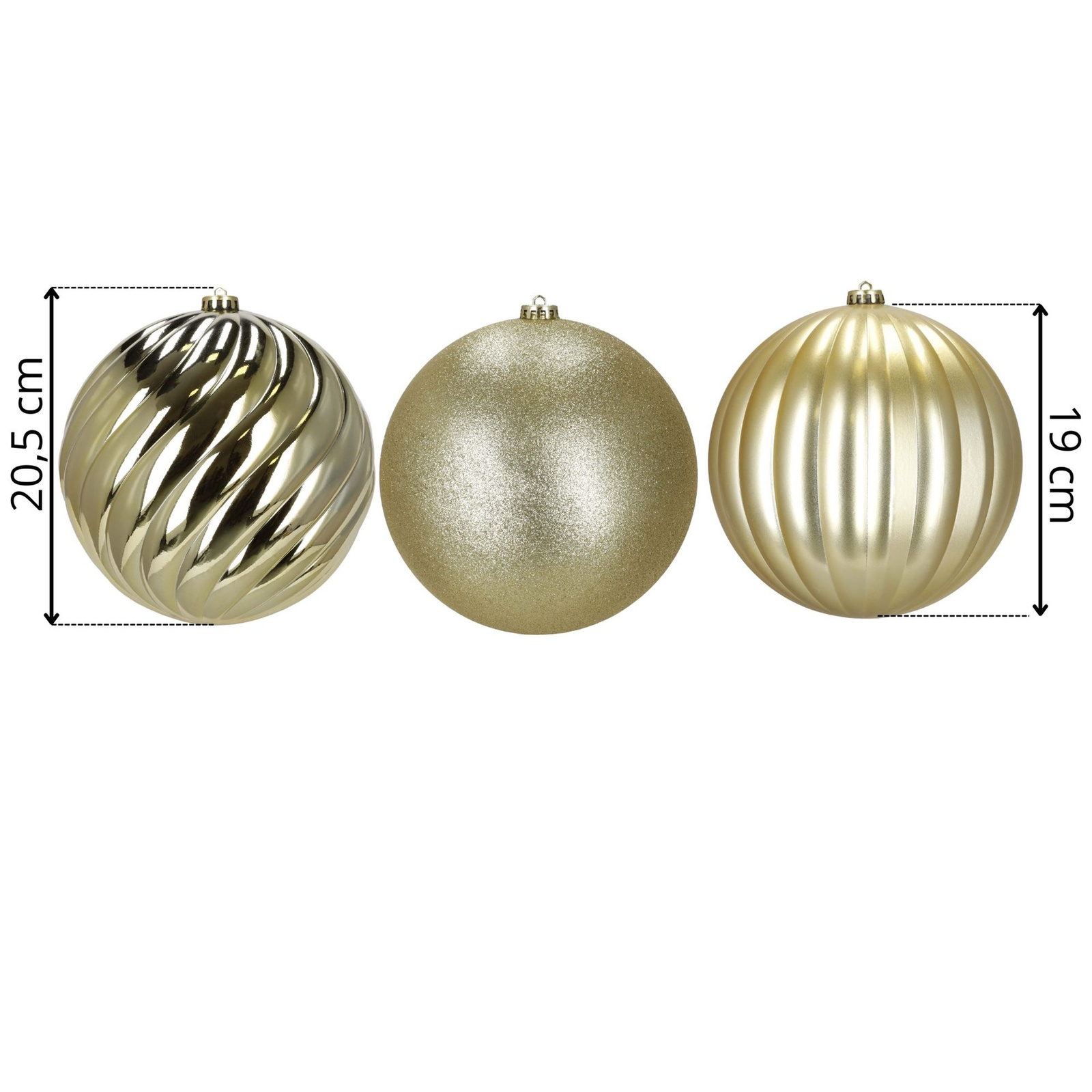 Duże bombki choinkowe 3 szt. ozdoby świąteczne 20,5 cm brokat złote