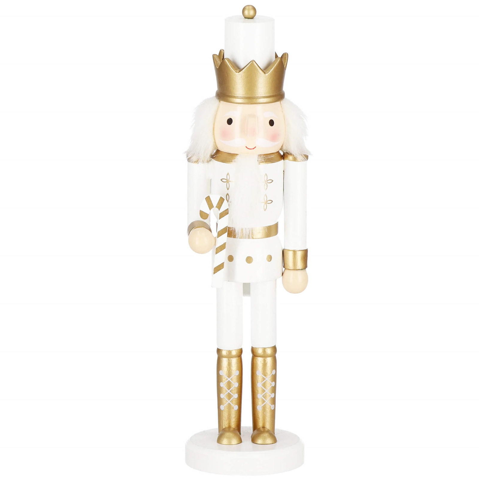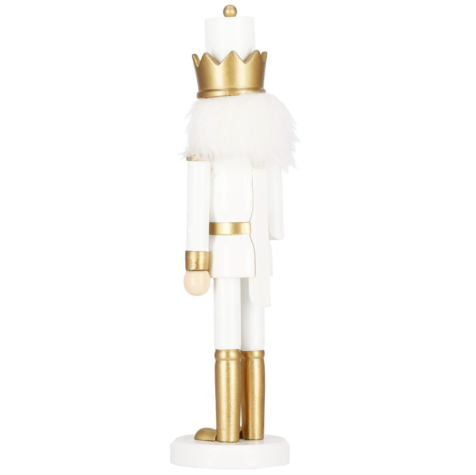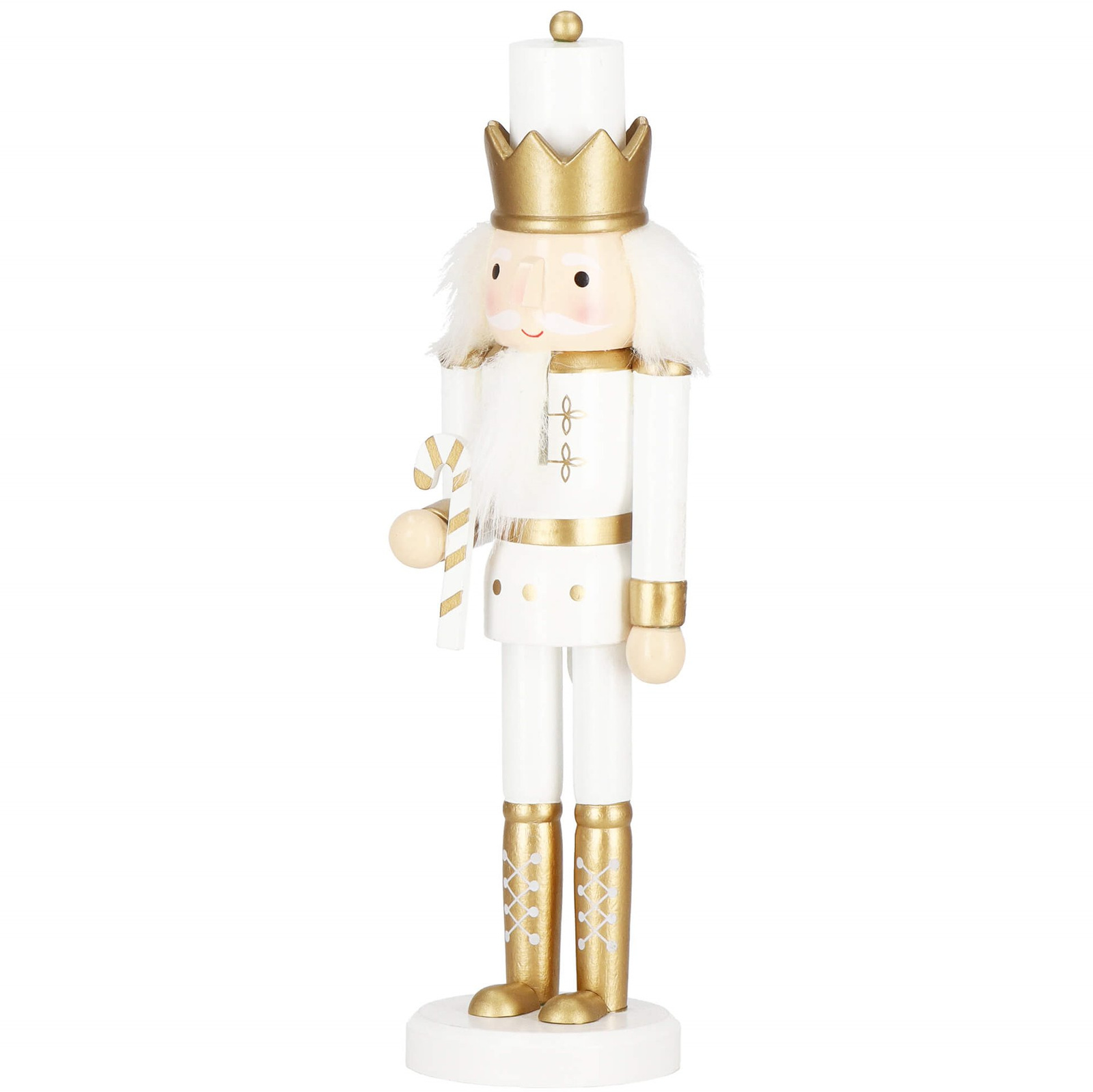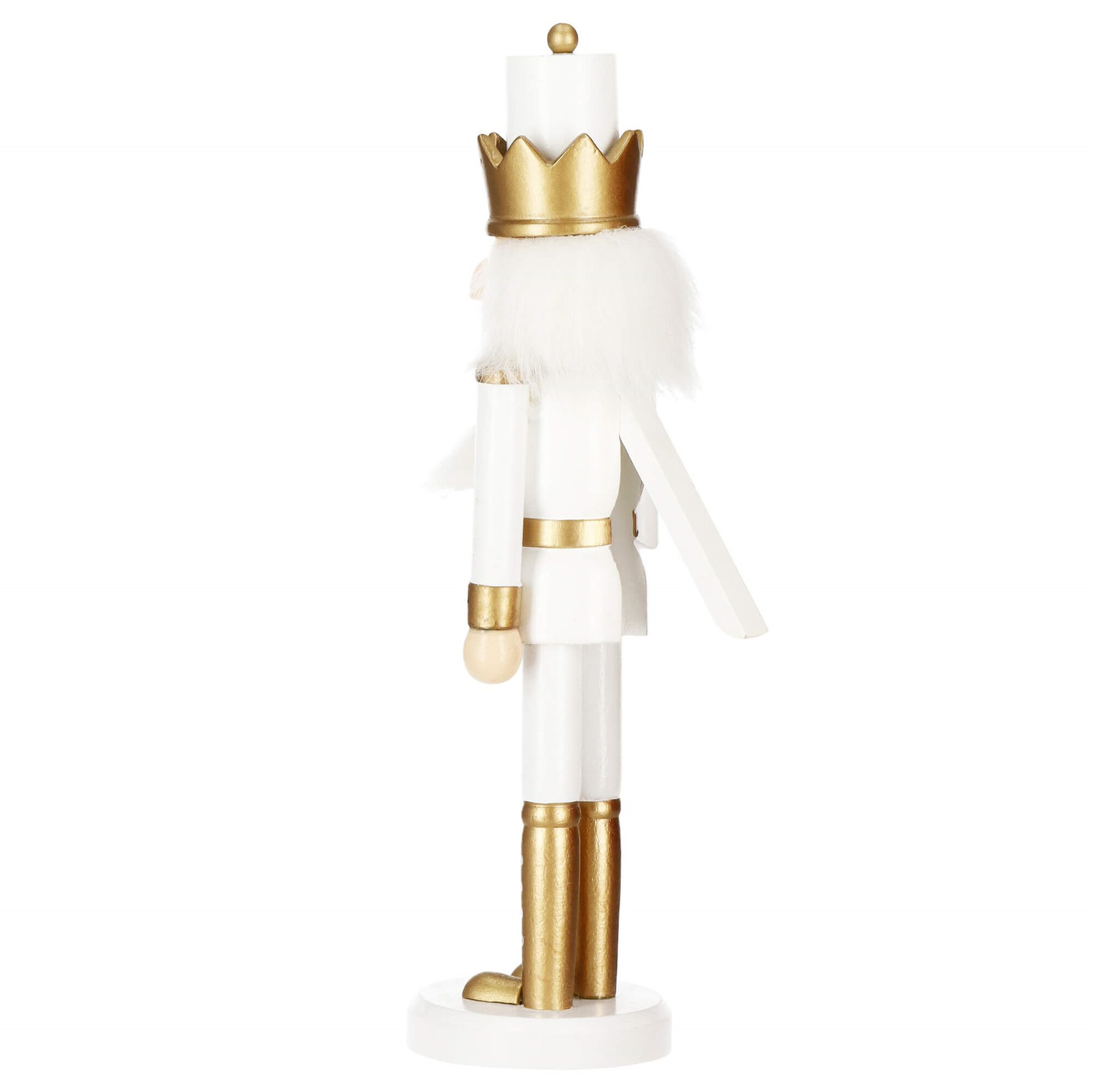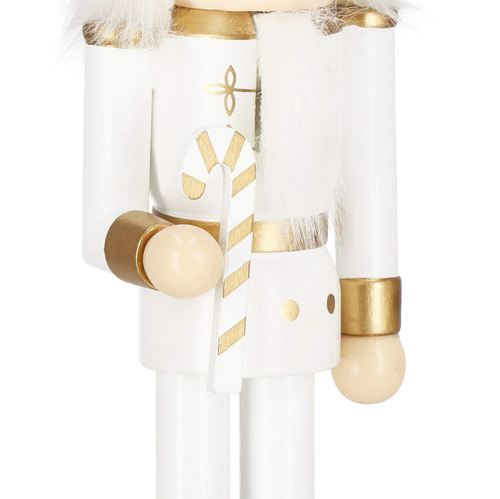 Piękny biały dziadek do orzechów fantastycznie dopełni nie jedną, świąteczną aranżację. Kojarzy się on bardzo mocno z tradycją, jednak jego nowoczesna forma cudownie wpisuje się w obowiązujące trendy. Złota mieniąca się kolorystyka w połączeniu z klasyczną bielą tworzy niezwykle efektowne zestawienie. Majestatycznego wyglądu żołnierzykowi dodają detale takie laska, korona.