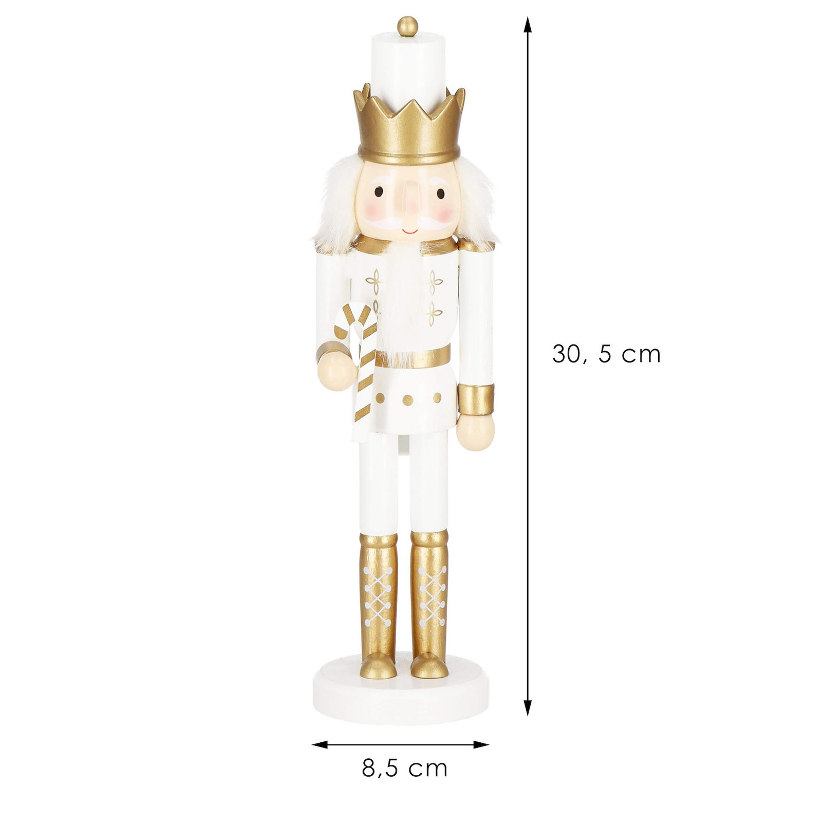 Dziadek do orzechów 30,5 cm z laską drewniany żołnierzyk złoty, figurka świąteczna
