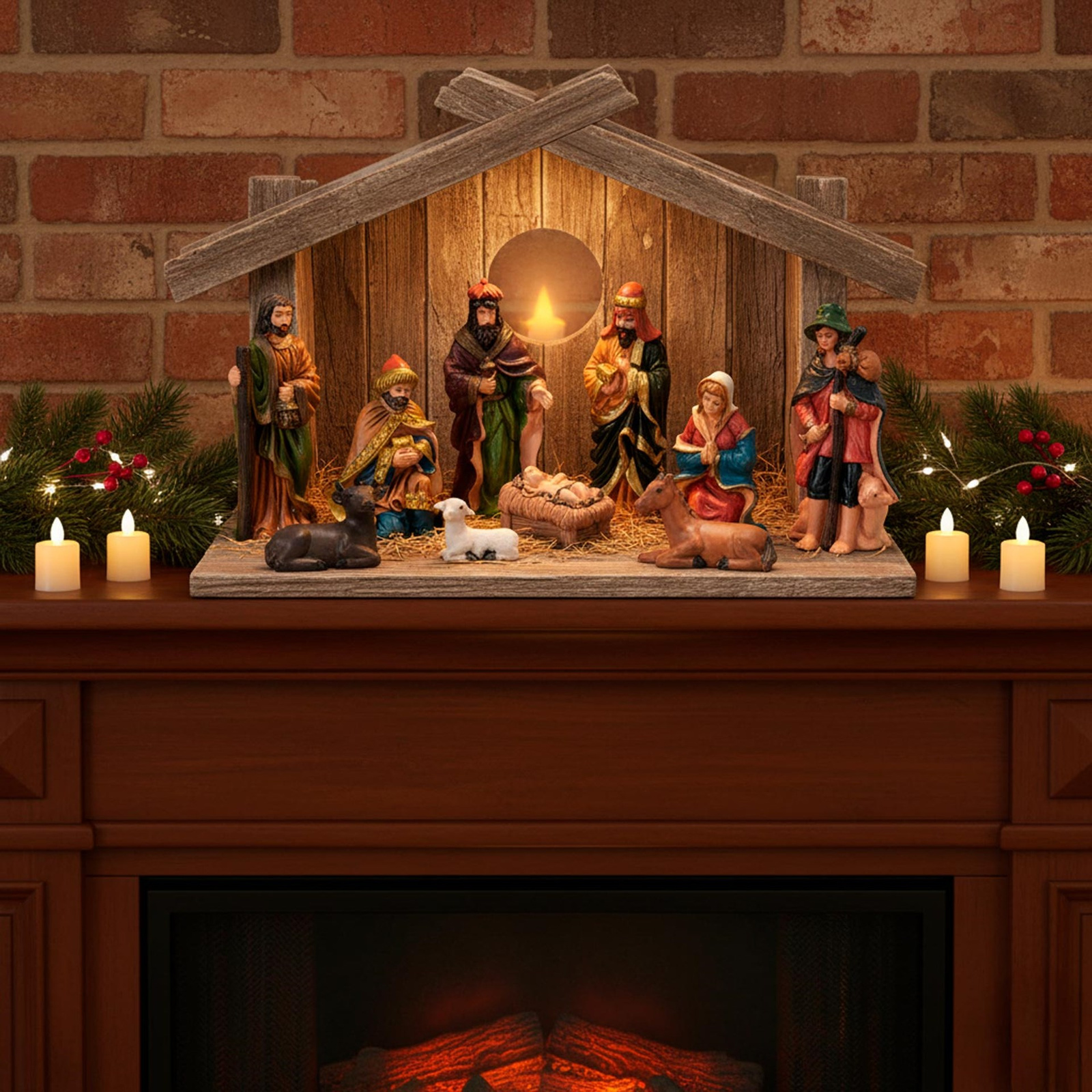 Szopka bożonarodzeniowa to jedna z tych dekoracji, których nie może zabraknąć na świątecznym stole czy pod choinką. Jeśli chcesz samodzielnie przygotować szopkę lub masz już gotowy produkt, do jej ozdobienia przydadzą ci się figurki. Nasz zestaw figurek z żywicy zawiera 7 postaci i trzy zwierzęta. W skład kompletu wchodzą następujące postacie: mały Jezus leżący w żłobie, Trzej Królowie, Maria i Józef, oraz pasterz. W stajence nie może zabraknąć też zwierząt: owcy, krowy i osła. Figurki pozwolą ci na dokładne odwzorowanie szopki bożonarodzeniowej zgodnie z chrześcijańską tradycją.