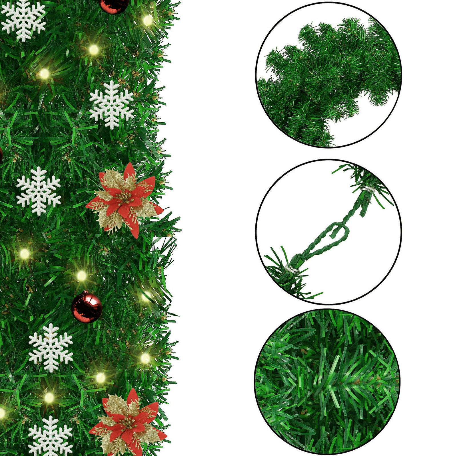 Pięknie prezentująca się girlanda świąteczna o długości 300 cm będzie fantastycznym dodatkiem na Boże Narodzenie. Jej ogromnym atutem jest naturalny wygląd imitujący żywą choinę. Łańcuch składa się z wielu gałązek, które solidnie przymocowano do grubego drutu. Możliwość odpowiedniego rozłożenia gałązek pozwoli osiągnąć spektakularny efekt węża choinkowego. Gałązki mają długość 15-20 cm, co sprawia, że całość jest gęsta.