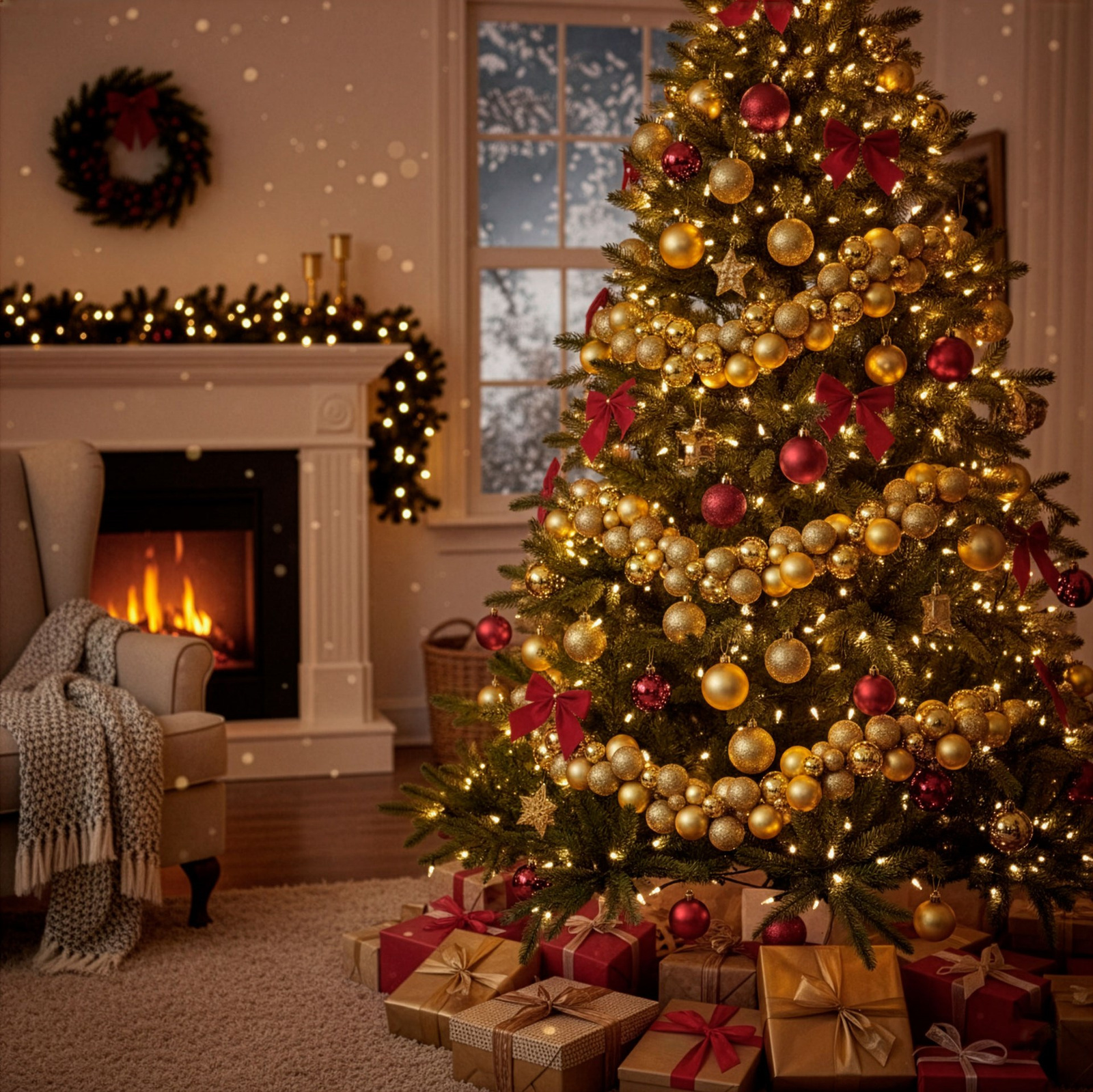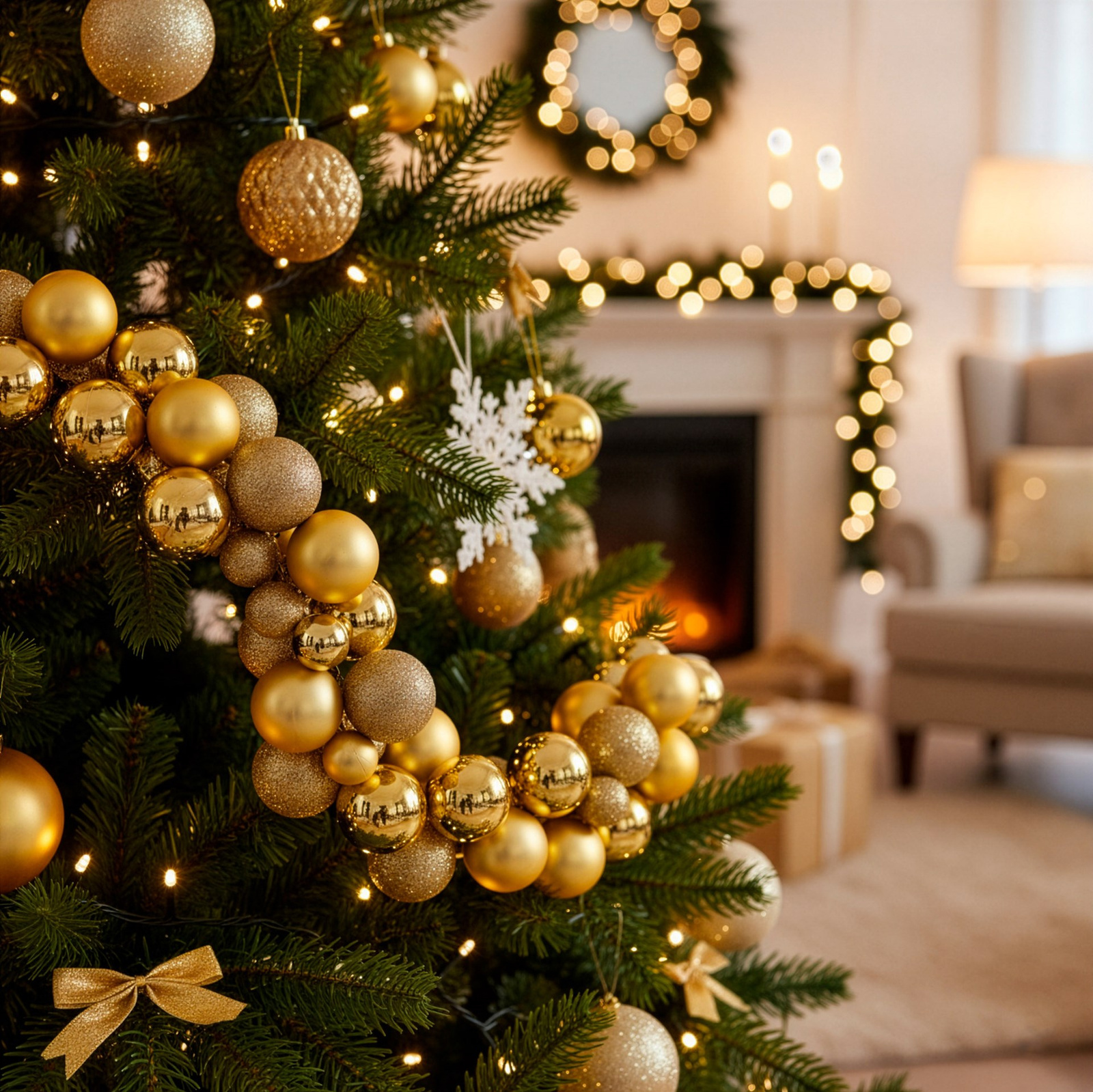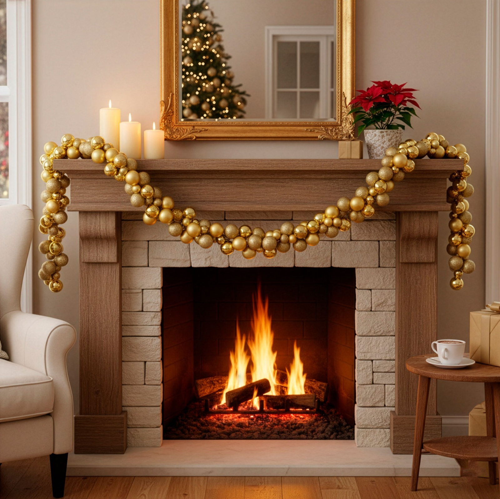 ⭐ Efektowny blask - złote bombki odbijają światło, tworząc elegancki, świąteczny połysk.