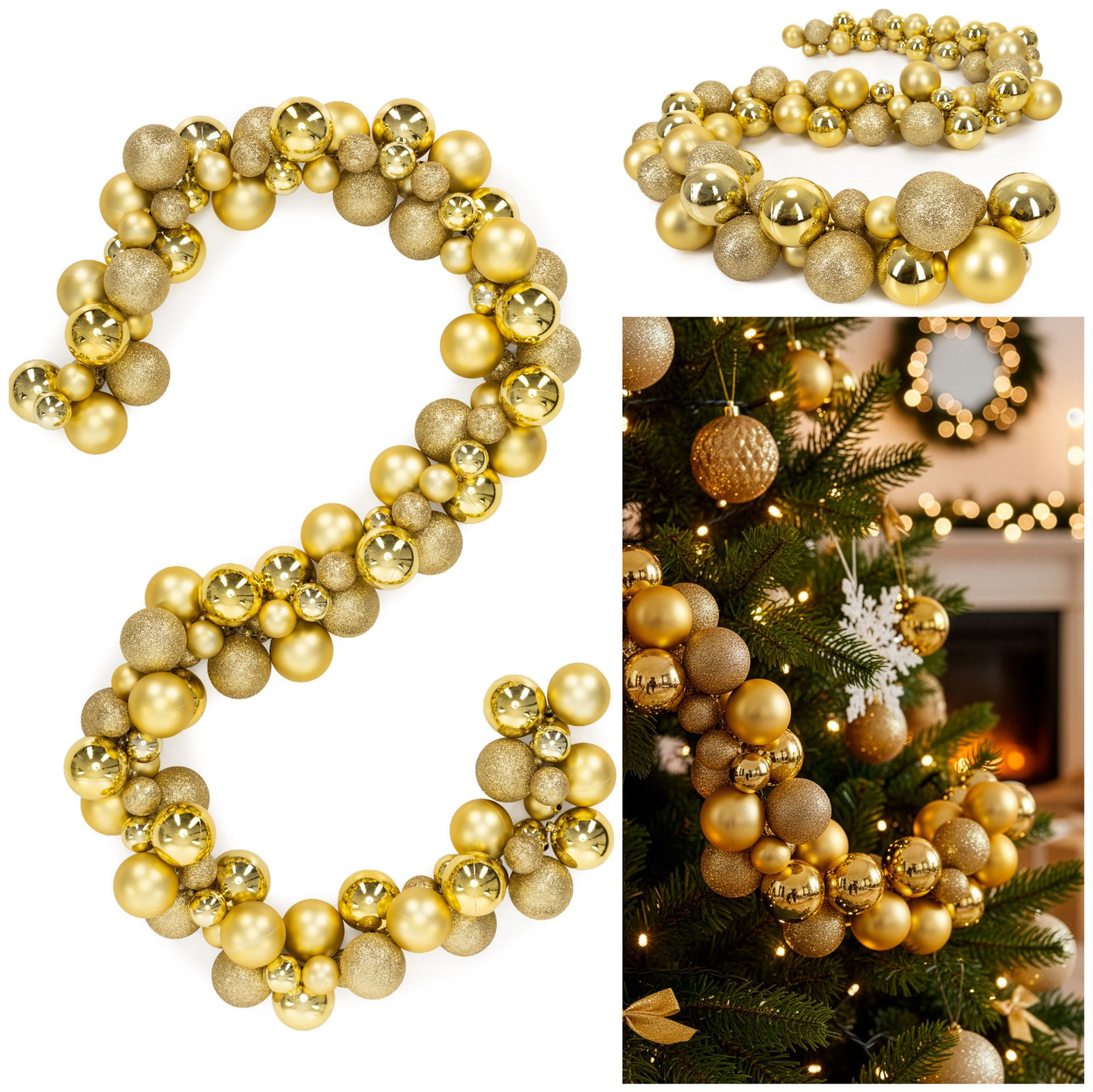 Girlanda świateczna z 130 szt. bombek, łańcuch choinkowy 160 cm, złote