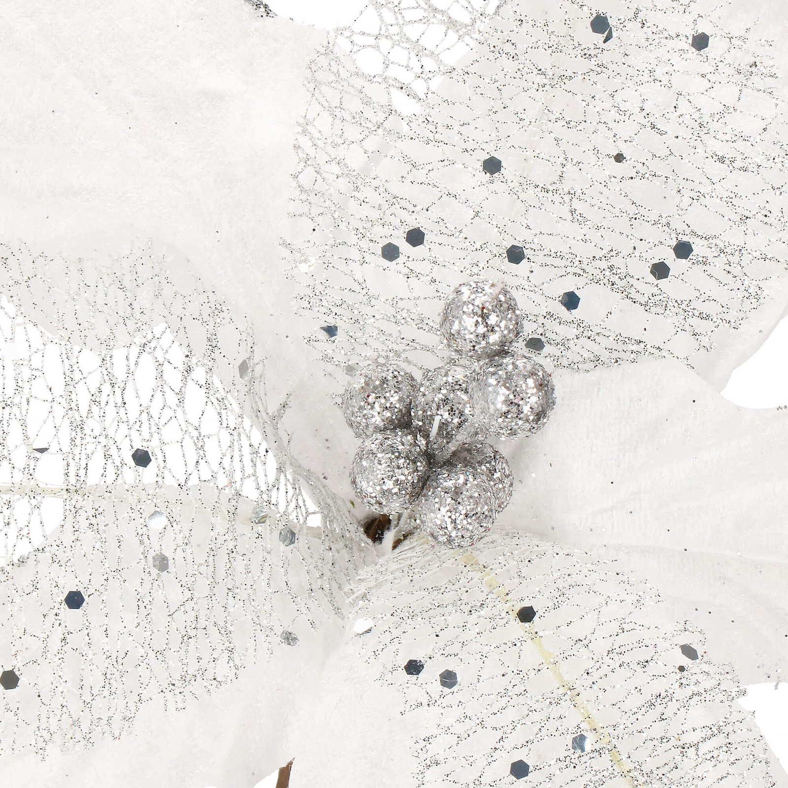 Gwiazda betlejemska 23 cm sztuczny kwiat, poinsecja biała z brokatem