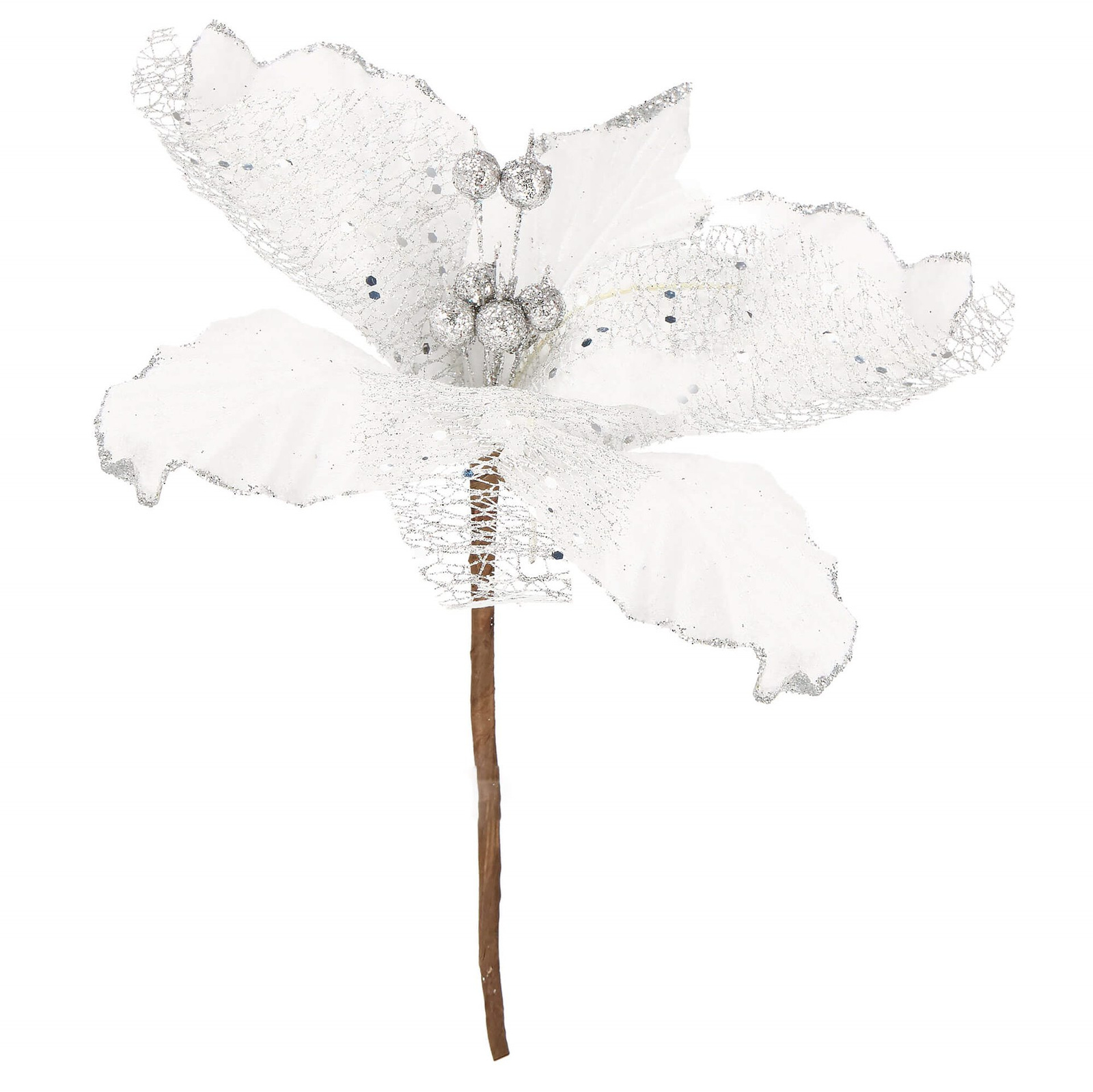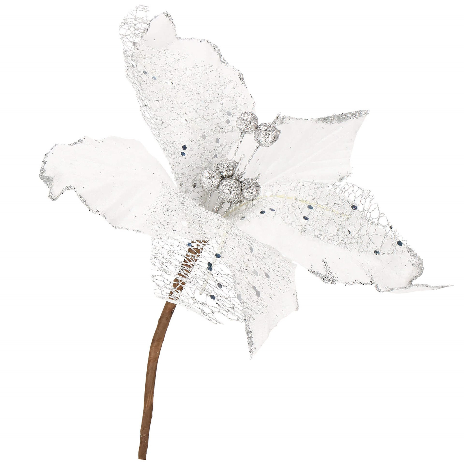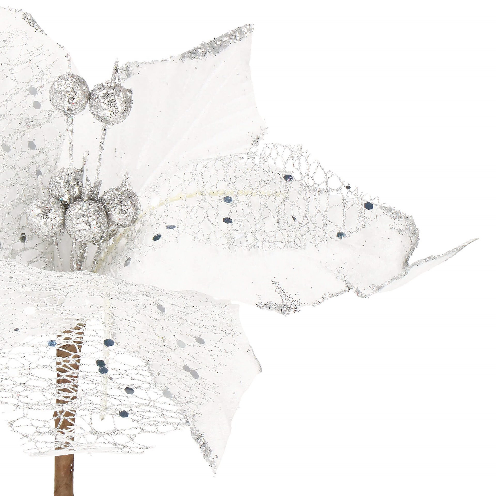 Opinie o Gwiazda betlejemska 23 cm sztuczny kwiat, poinsecja biała z brokatem