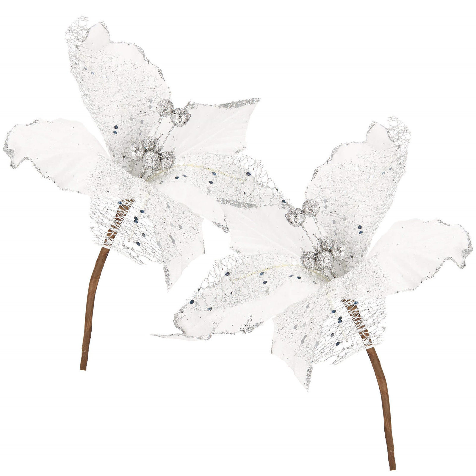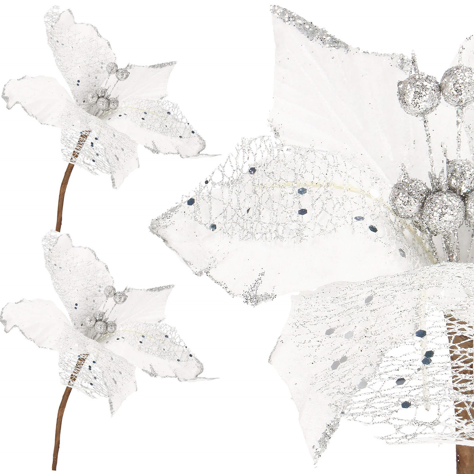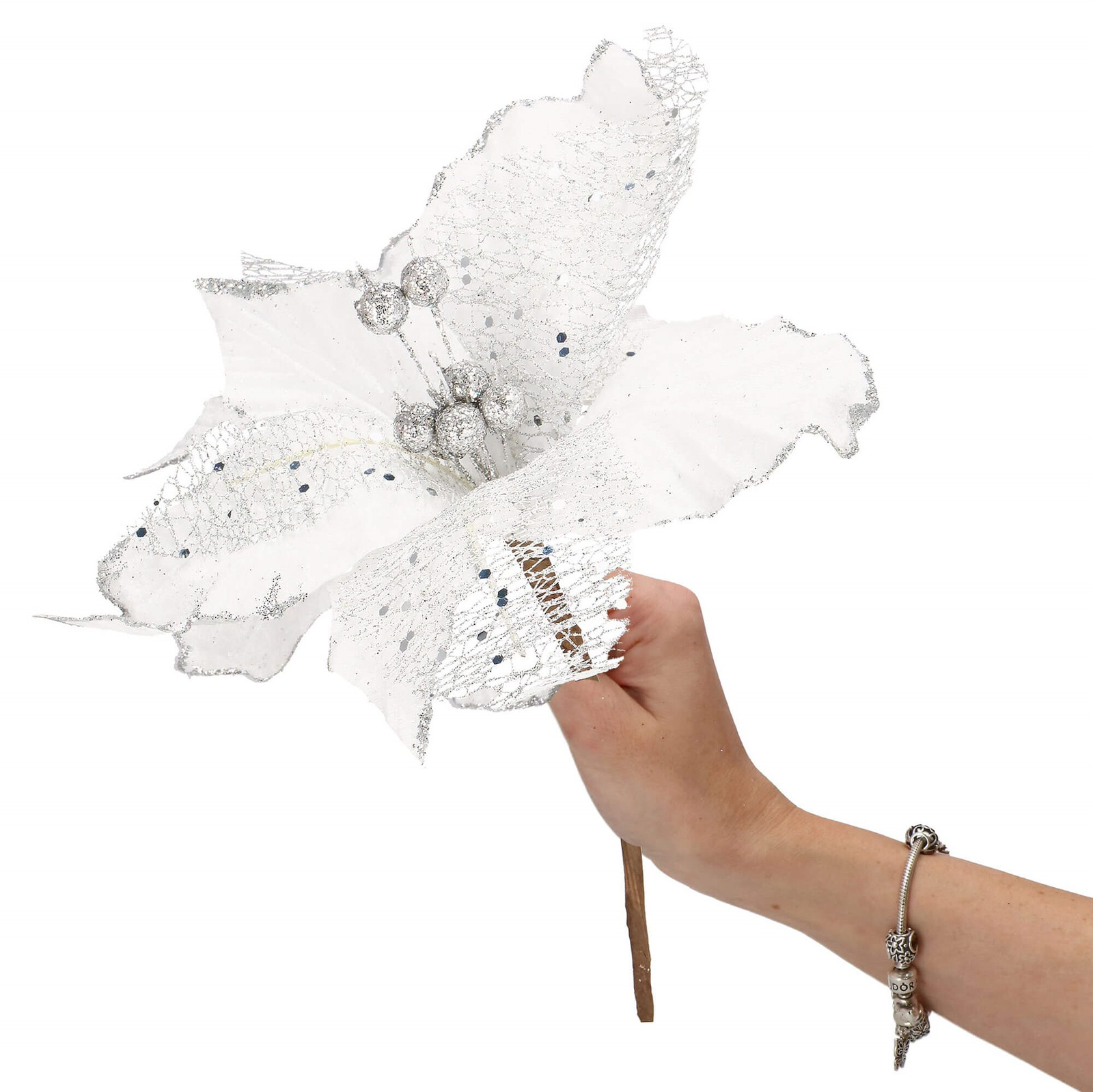 Opinie o Gwiazda betlejemska 23 cm sztuczny kwiat, poinsecja biała z brokatem