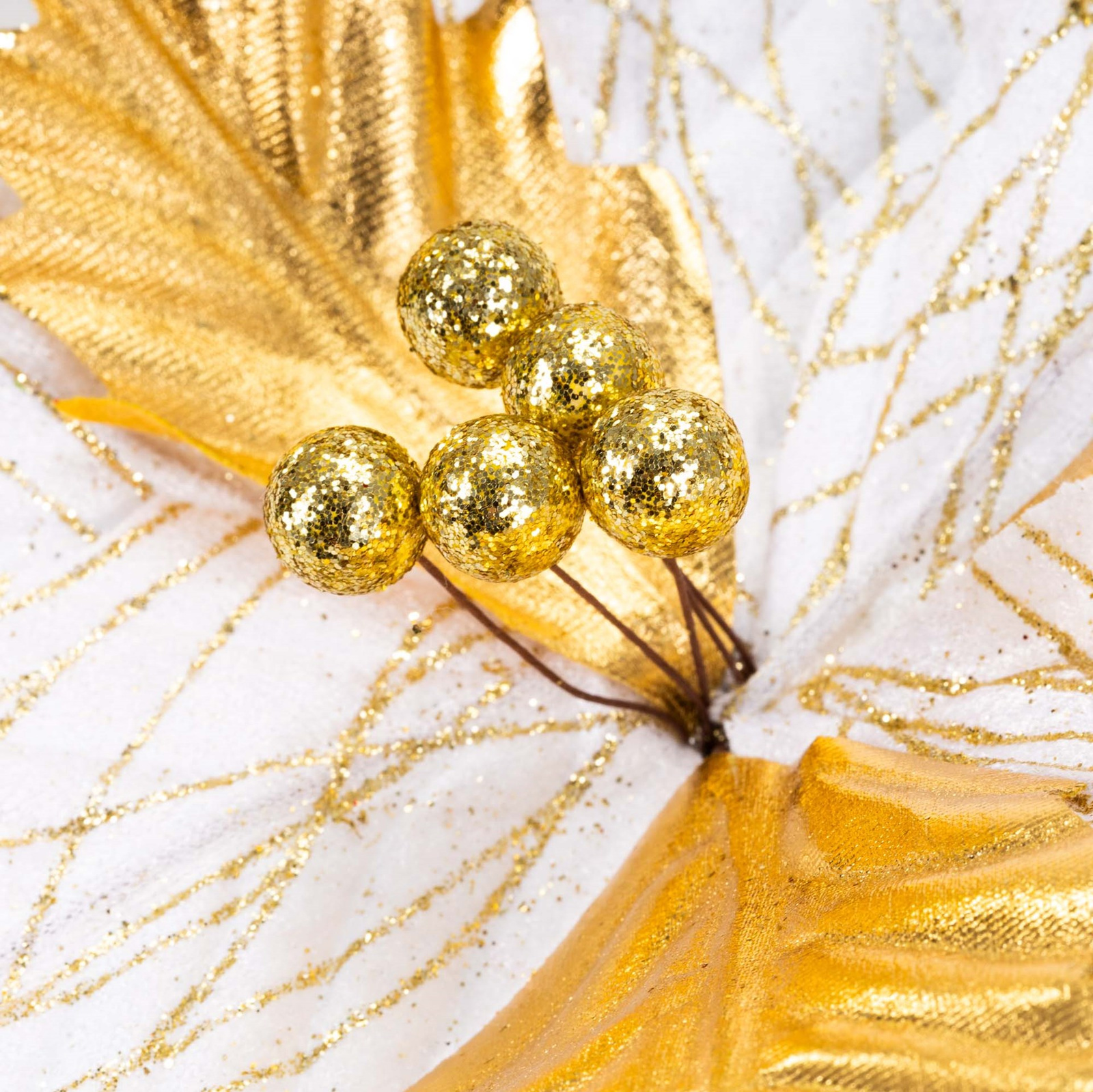 Gwiazda betlejemska 26 cm sztuczny kwiat, poinsecja złota z brokatem