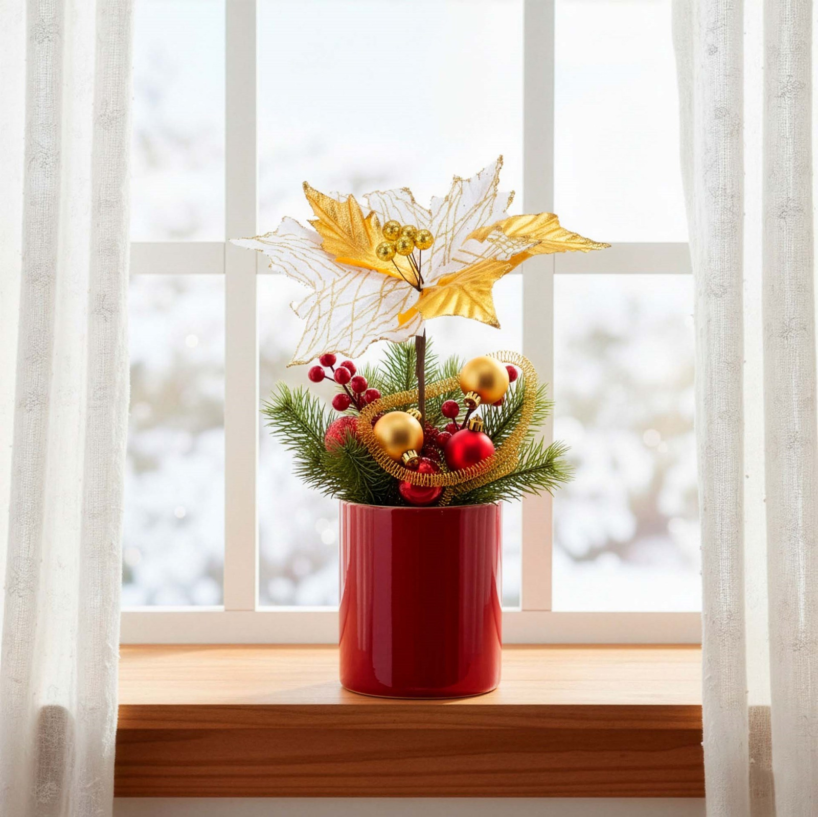Doskonale odwzorowana sztuczna gwiazda betlejemska marki Springos ozdobi stroiki świąteczne, wieńce, girlandy i drzewka bożonarodzeniowe. Jako jeden z wielu symboli świąt poinsecja będzie pasowała do wszelkiego rodzaju dekoracji wigilijnych. Dzięki użyciu miękkiego materiału i precyzji wykonania kwiat do złudzenia przypomina swój żywy odpowiednik. Delikatne, brokatowe zdobienia nadają poinsecji blasku i elegancji. Rozłożyste, charakterystycznie postrzępione płatki zostały wykonane z dbałością o najmniejszy szczegół. Długa nóżka pozwala na łatwe umieszczenie dekoracji w docelowym miejscu.