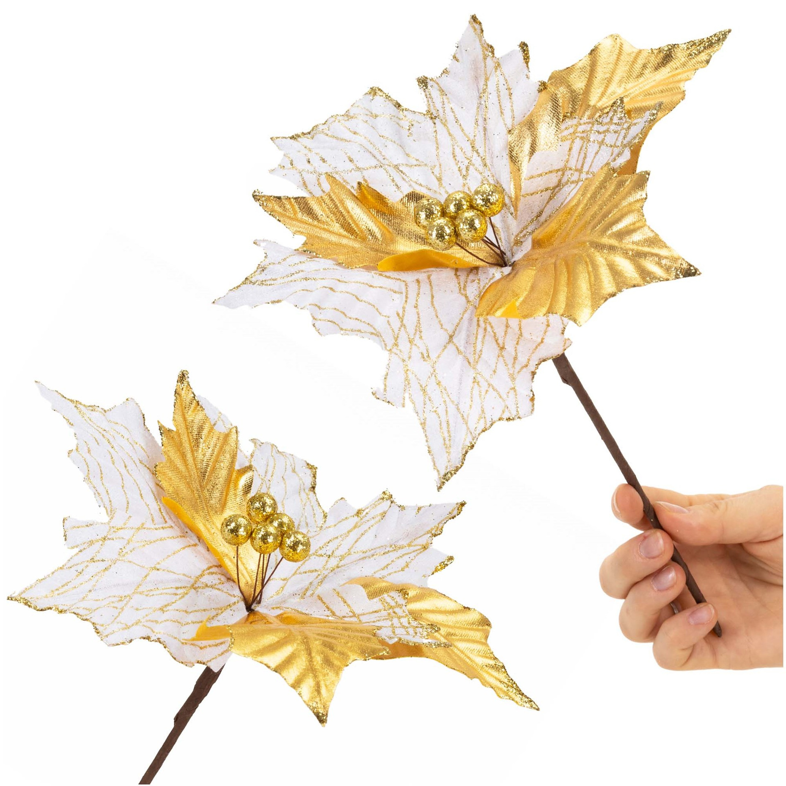 Opinie o Gwiazda betlejemska 26 cm sztuczny kwiat, poinsecja złota z brokatem