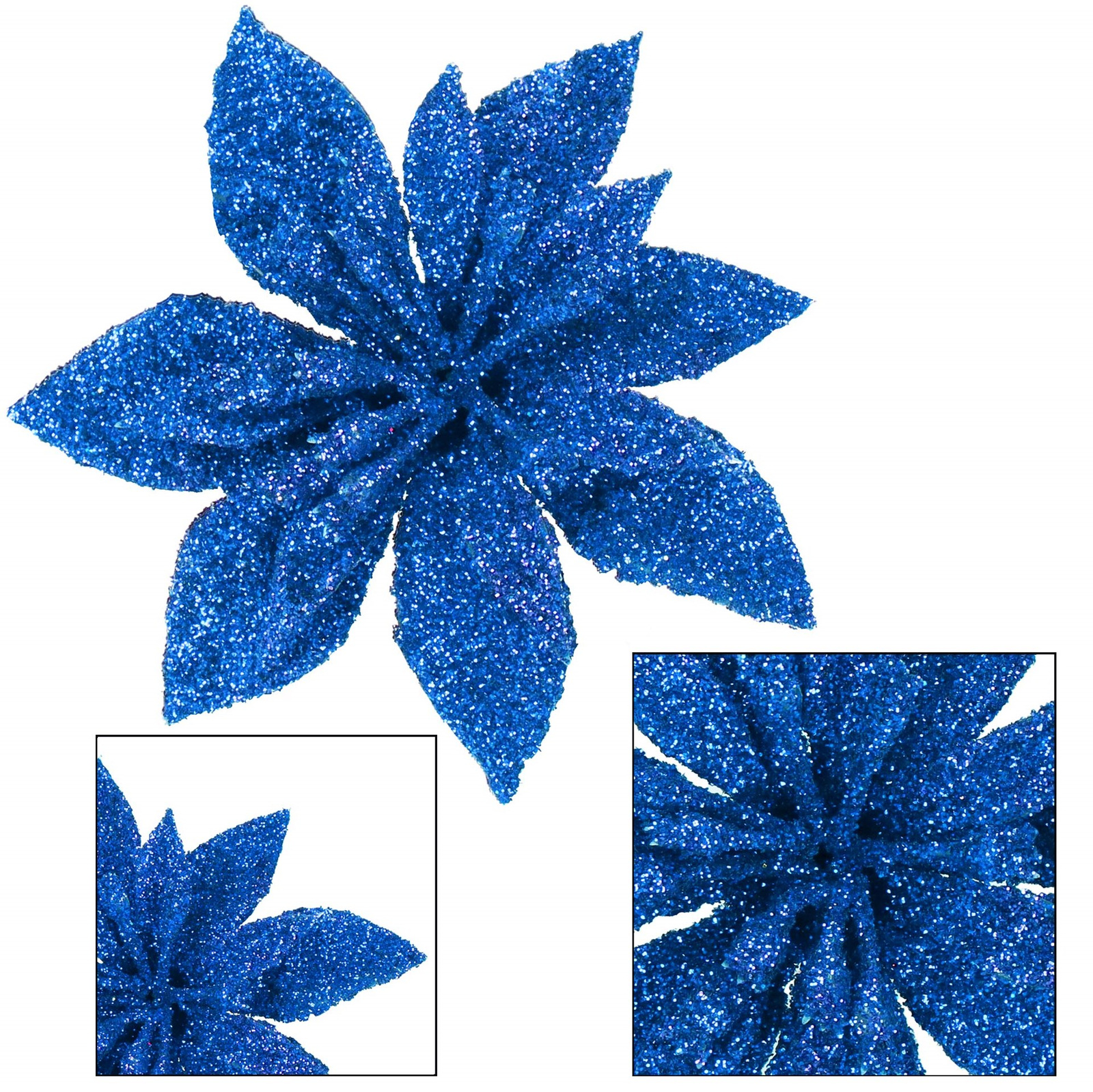 Gwiazda betlejemska, sztuczny kwiat poinsecja niebieski z brokatem
