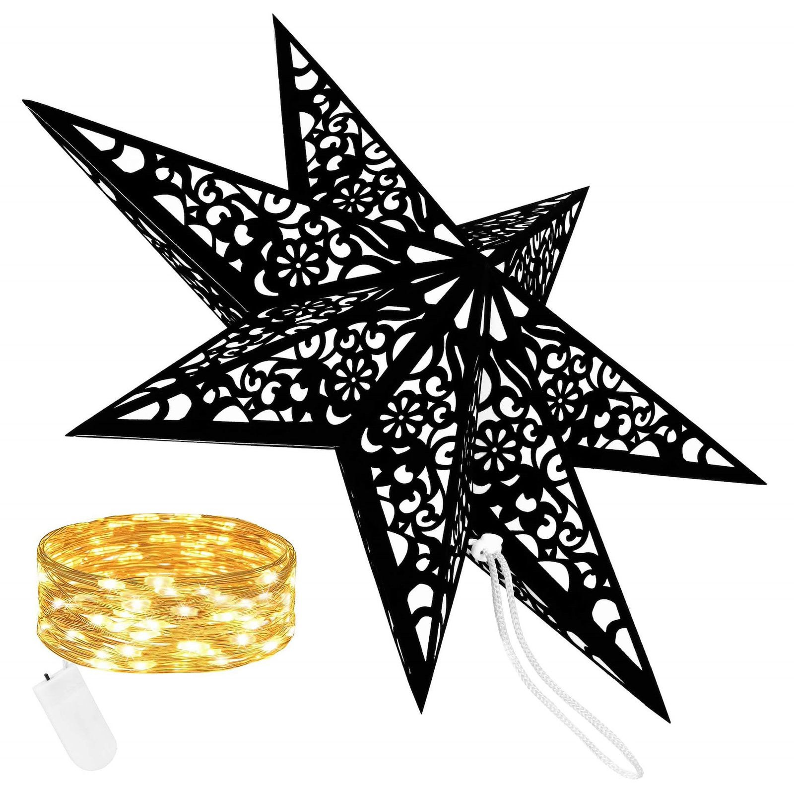 Gwiazda świąteczna papierowa czarna i lampki choinkowe 10 led ciepły biały
