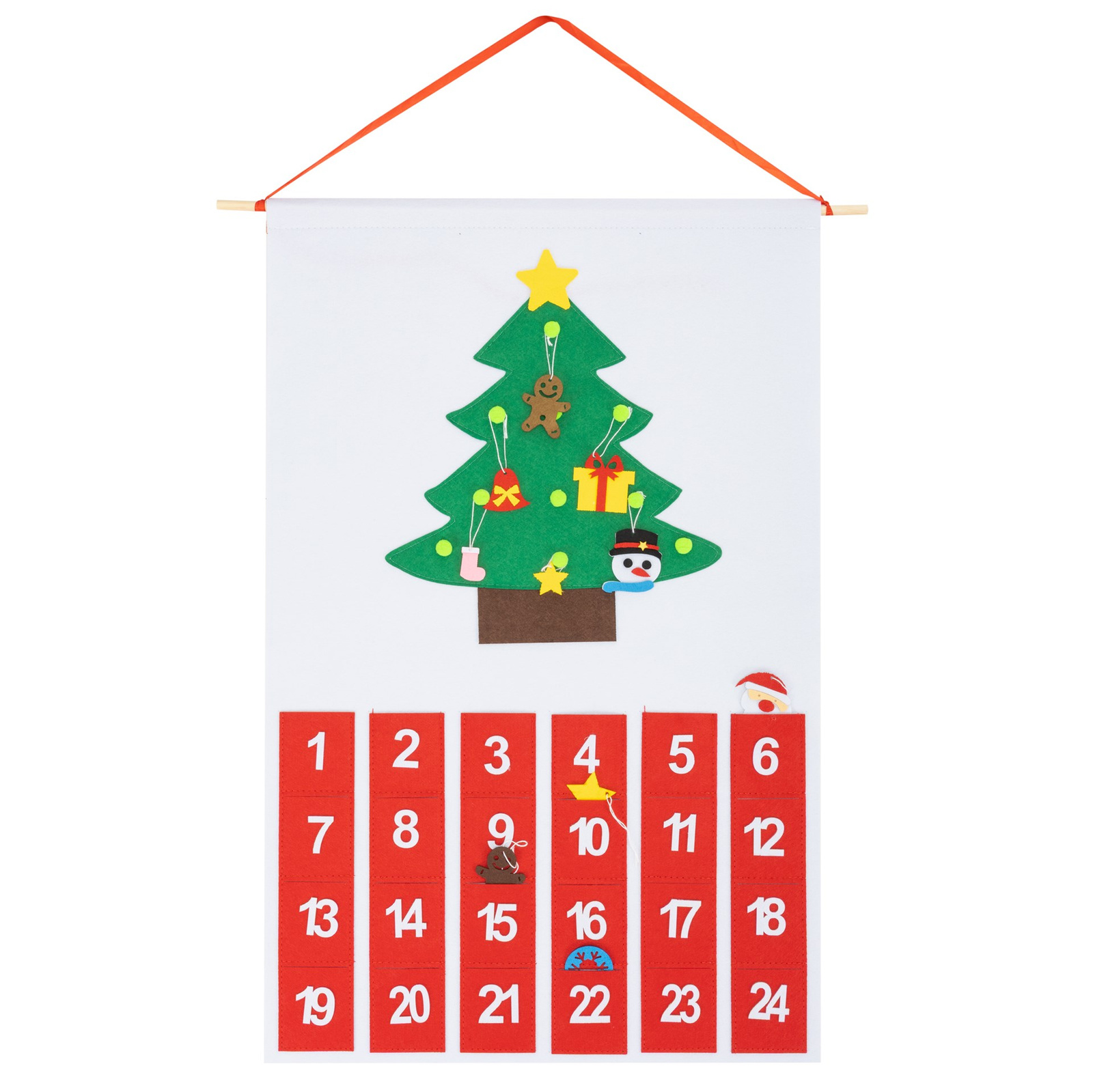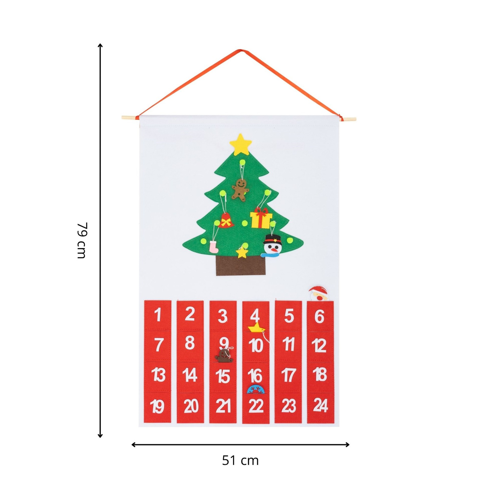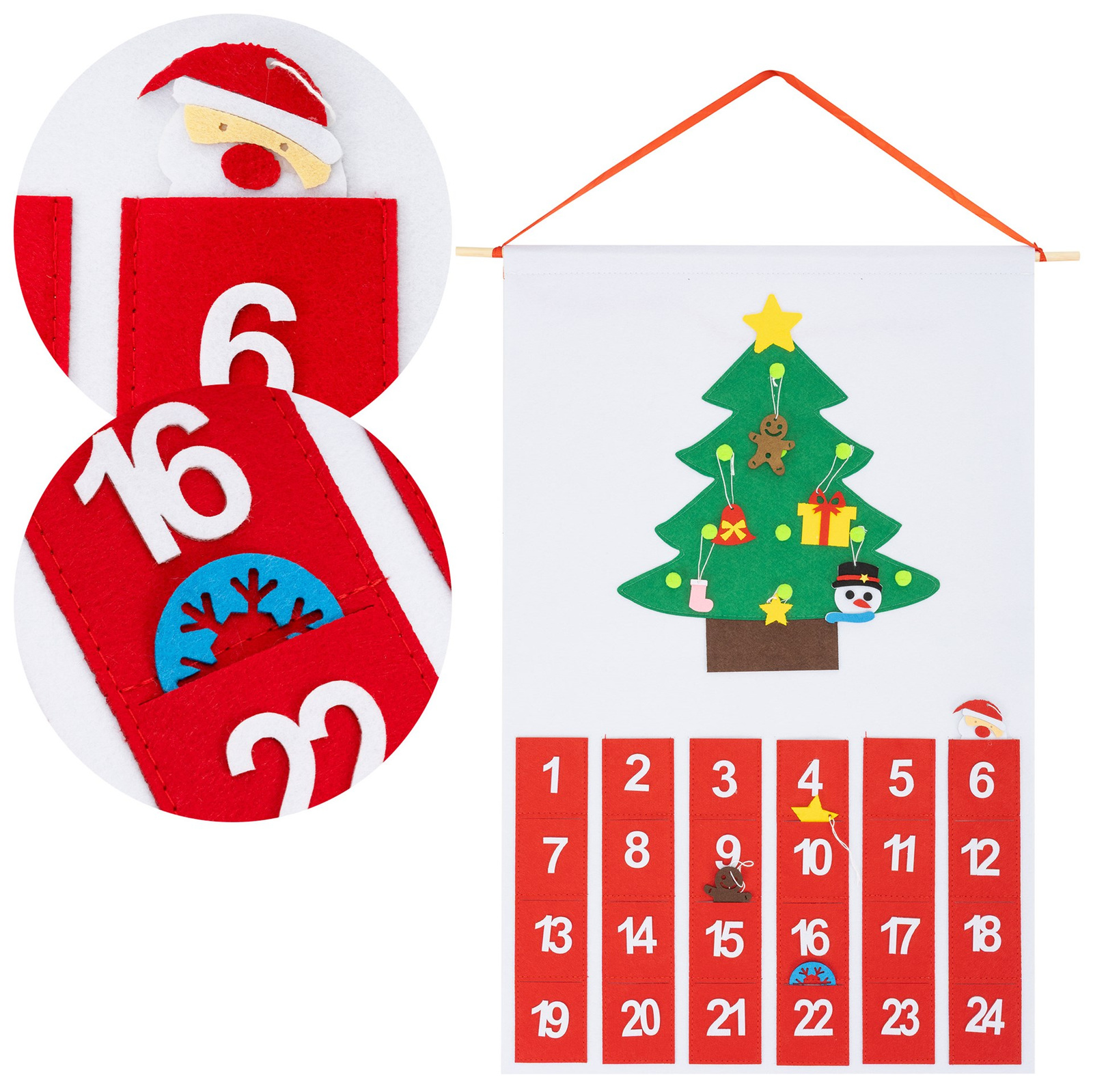 Kalendarz adwentowy na ścianę z 24 okienkami 10 ozdobami na choinkę, dekoracja świąteczna
