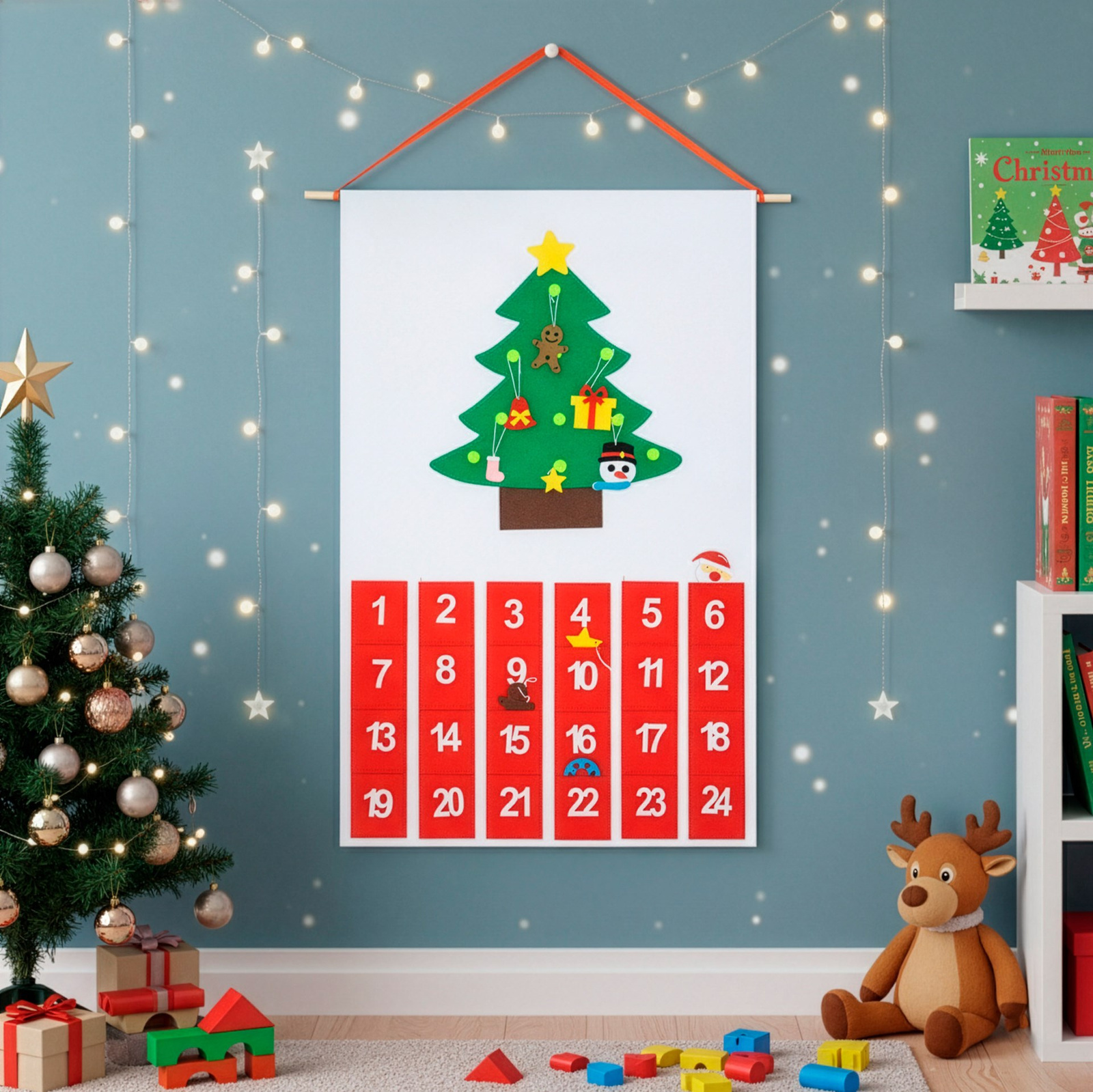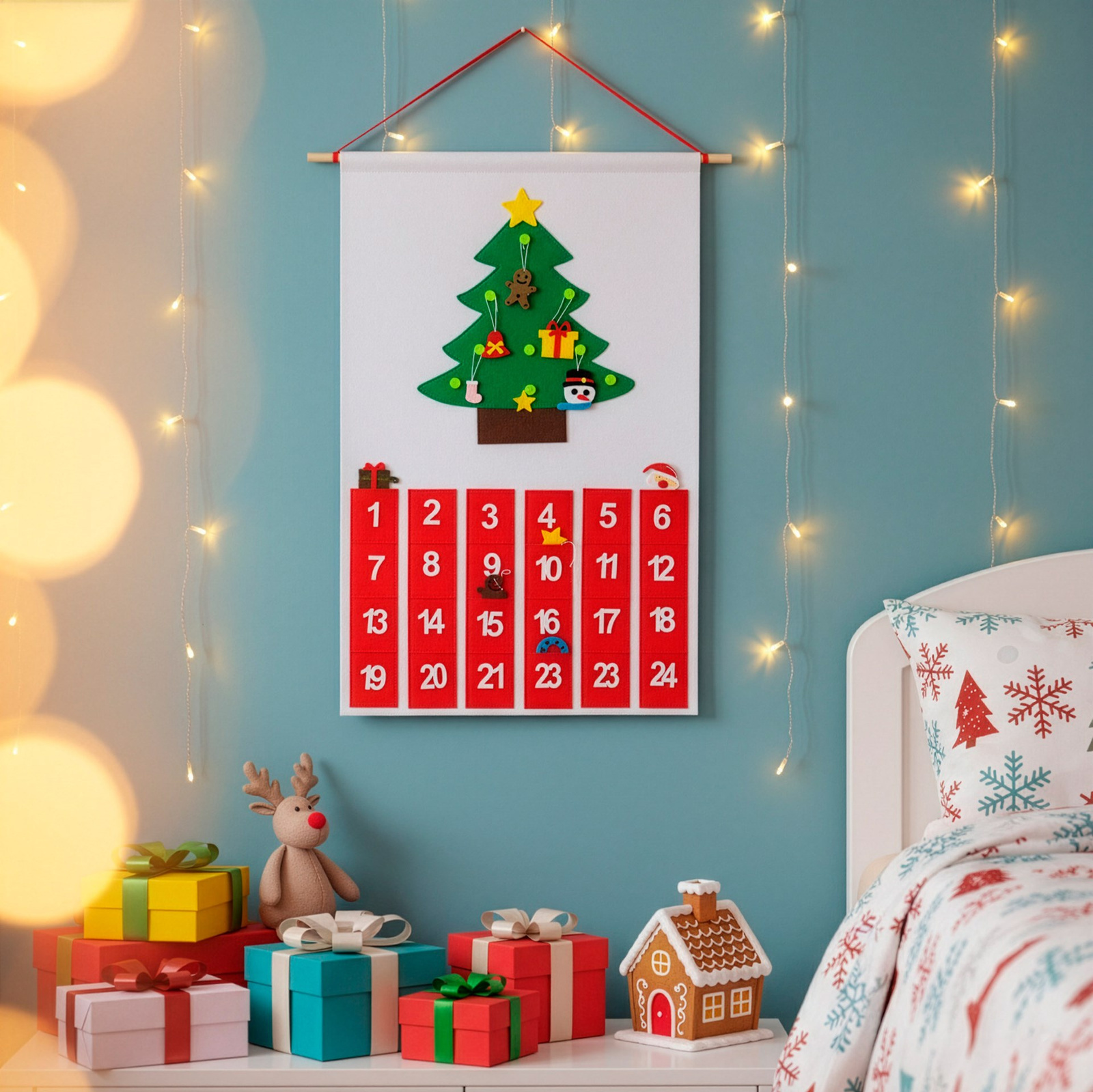 Wiszący kalendarz adwentowy z 24 okienkami i ozdobami na choinkę - prosty sposób na rodzinny rytuał adwentu