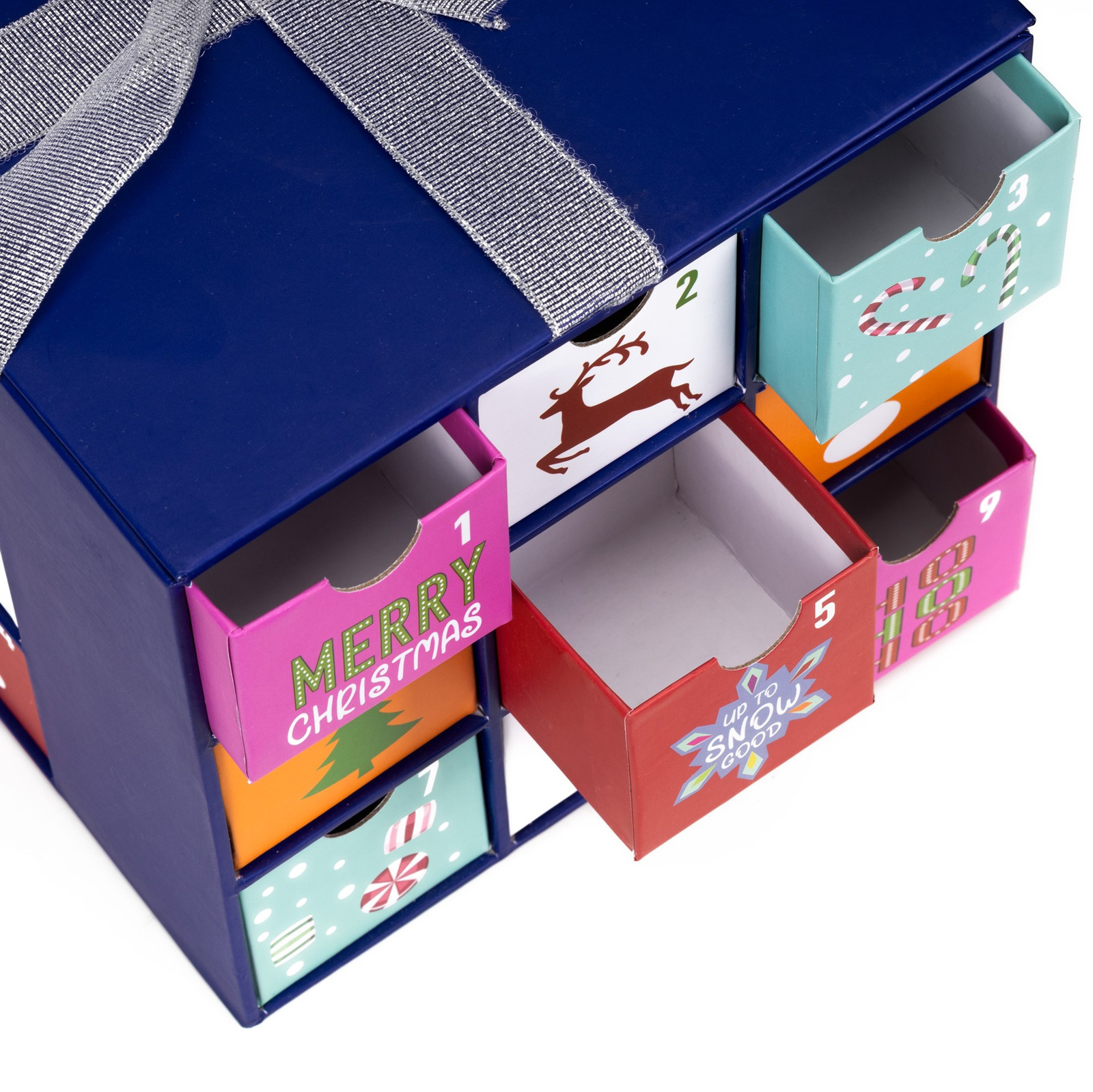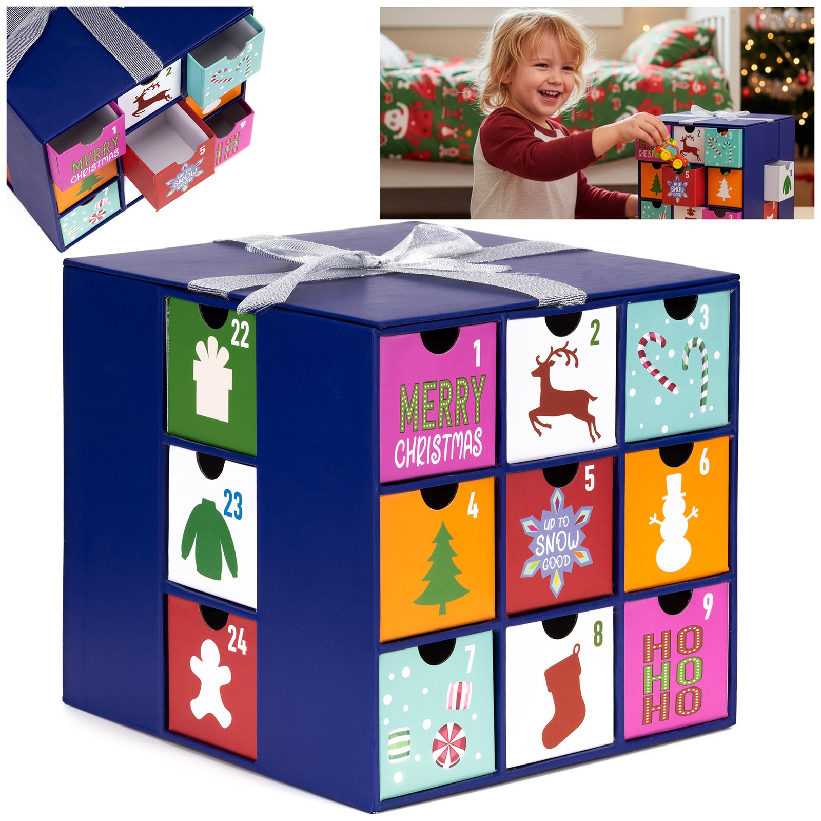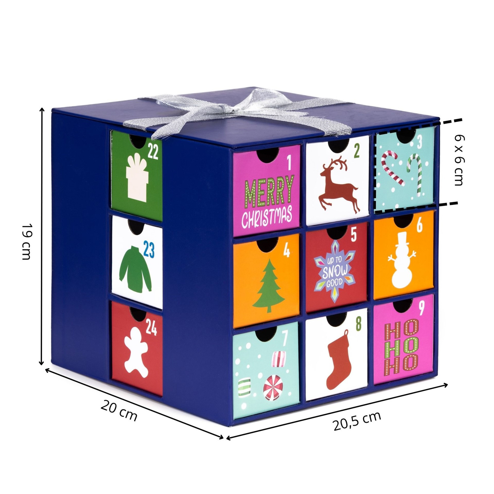 Kalendarz adwentowy, świąteczny pudełko z 24 szufladkami do uzupełnienia, multikolor