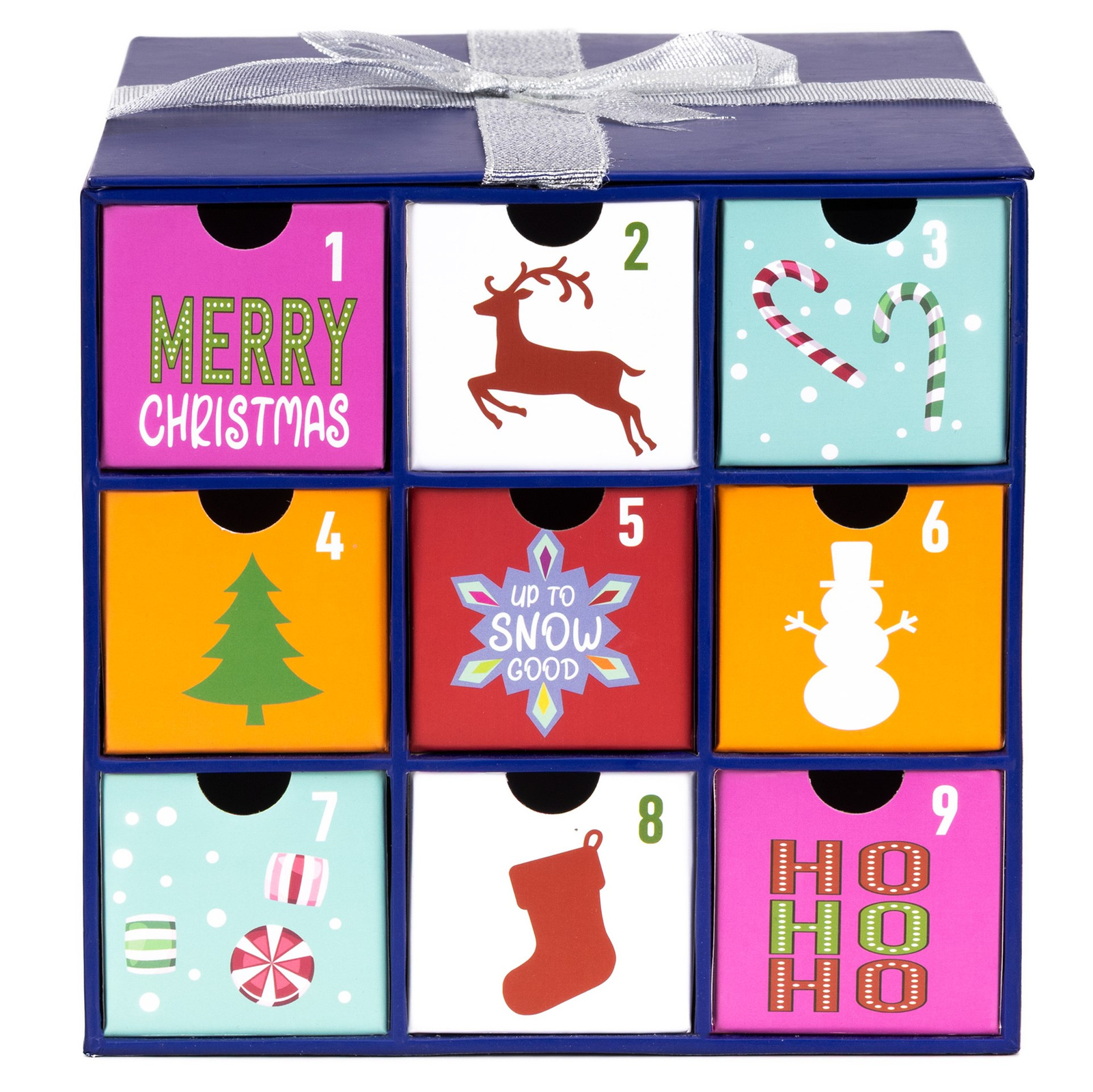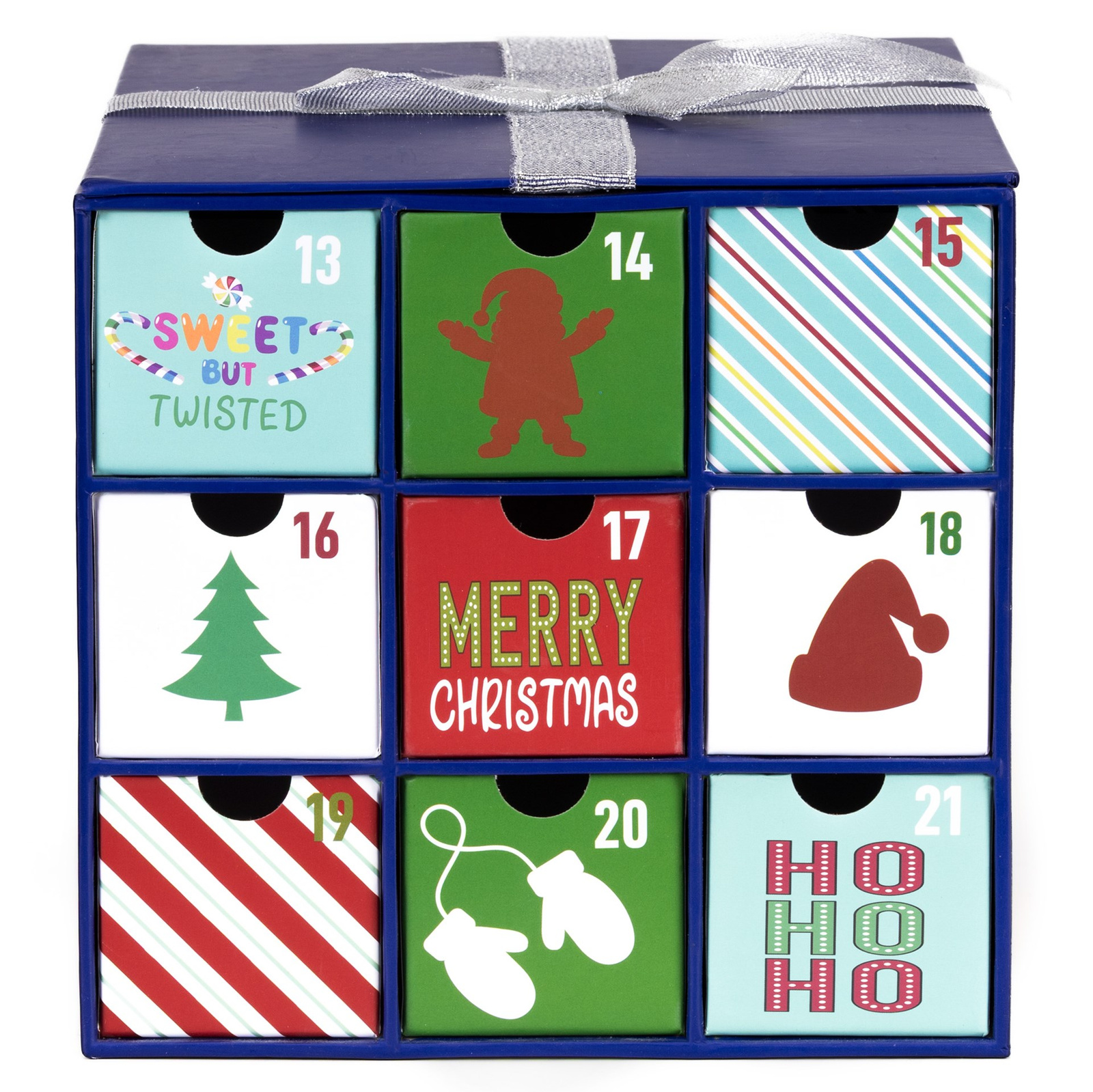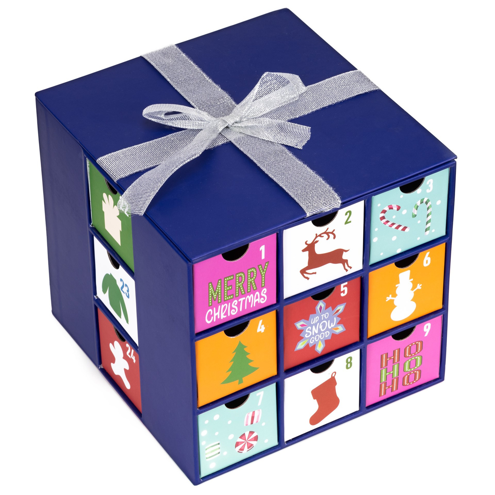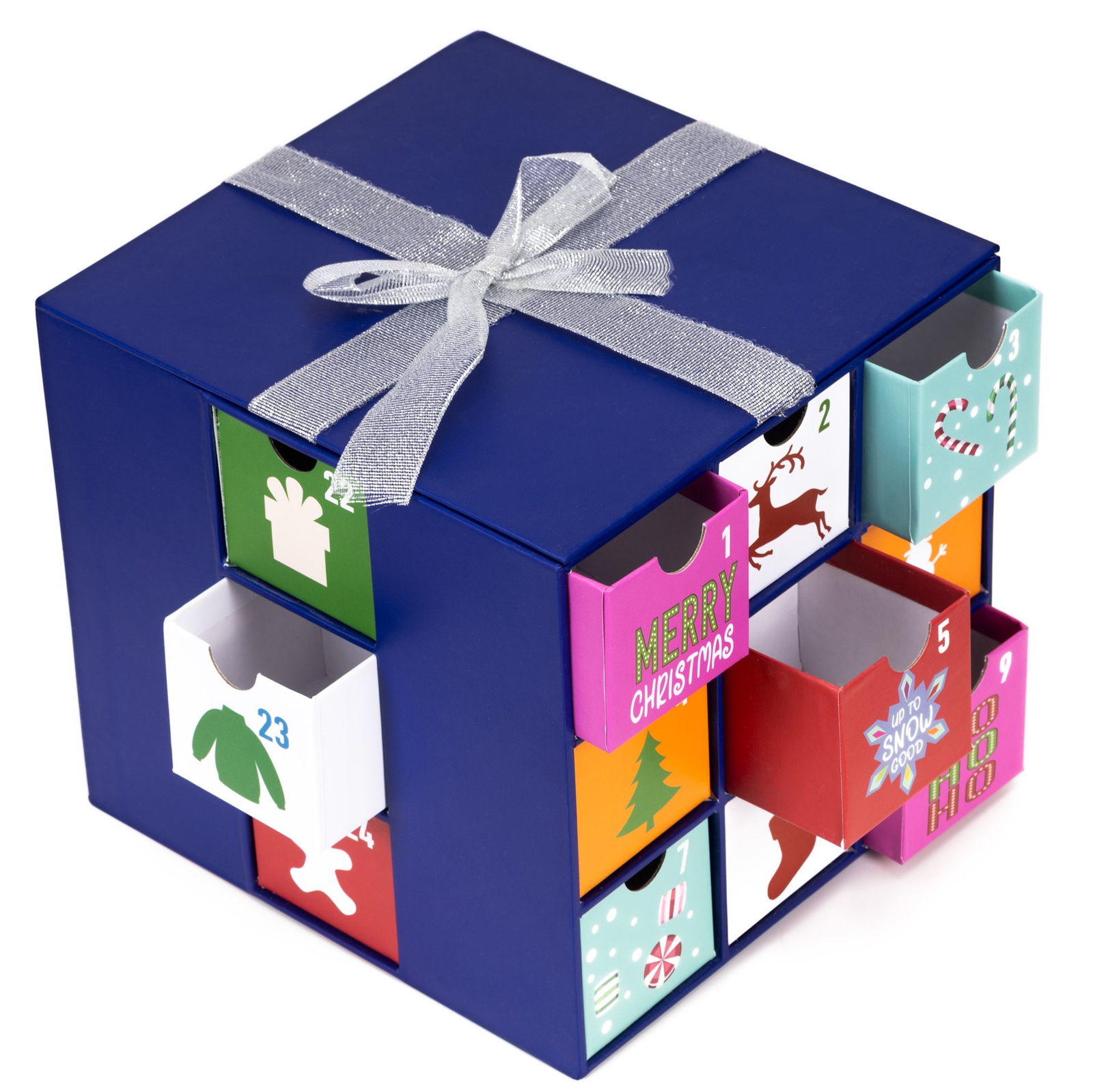 Kalendarz adwentowy, świąteczny pudełko z 24 szufladkami do uzupełnienia, multikolor