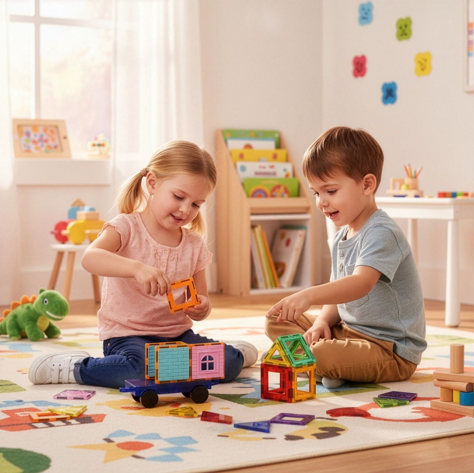 Klocki magnetyczne 100 sztuk to prawdziwy hit i bezsprzecznie najpopularniejsza zabawka tego roku. Komplet łączy prostotę użytkowania z ogromem możliwości konstrukcyjnych. Dwa dołączone podwozia pozwalają budować dynamiczne auta do zadań specjalnych. Pozostałe elementy posłużą do wznoszenia ścian, przytulnych domków i imponujących wież. Magnesy prowadzą elementy na swoje miejsce, dzięki czemu konstrukcje powstają szybko i trzymają formę. Dzieci spontanicznie uczą się zasad równowagi i symetrii. Intensywne kolory zachęcają do eksperymentów i mieszania wzorów. Zestaw sprzyja długim sesjom twórczej zabawy bez ekranów. Konstrukcje mogą tworzyć ulice, place i parkingi, po których mkną pojazdy. Dwa podwozia dają możliwość budowy jednocześnie dwóch samochodów, co zwiększa radość ze wspólnej zabawy. Elementy wygodnie się łączą i nie wyślizgują z dłoni. Każde rozłożenie i ponowne złożenie to nowa lekcja cierpliwości i wytrwałości. Zabawka rośnie wraz z umiejętnościami, bo z czasem powstają coraz bardziej śmiałe projekty. Budowanie domków uczy planowania przestrzeni i przewidywania skutków zmian. Wieże sprawdzają stabilność, a ich przewrócenie motywuje do szukania lepszych rozwiązań. Auta mogą pełnić rolę straży, kuriera lub pojazdu budowlanego, zależnie od scenariusza zabawy. Zestaw nie wymaga skomplikowanych instrukcji, więc dzieci szybko przechodzą do działania. Po zabawie łatwo utrzymać porządek, bo elementy zgrabnie mieszczą się w pudełku. To prezent, który nie nudzi się po pierwszym dniu i wciąż inspiruje do nowych prób. Jeżeli cenisz kreatywność, trwałość i uniwersalność, ten komplet świetnie spełni oczekiwania całej rodziny.