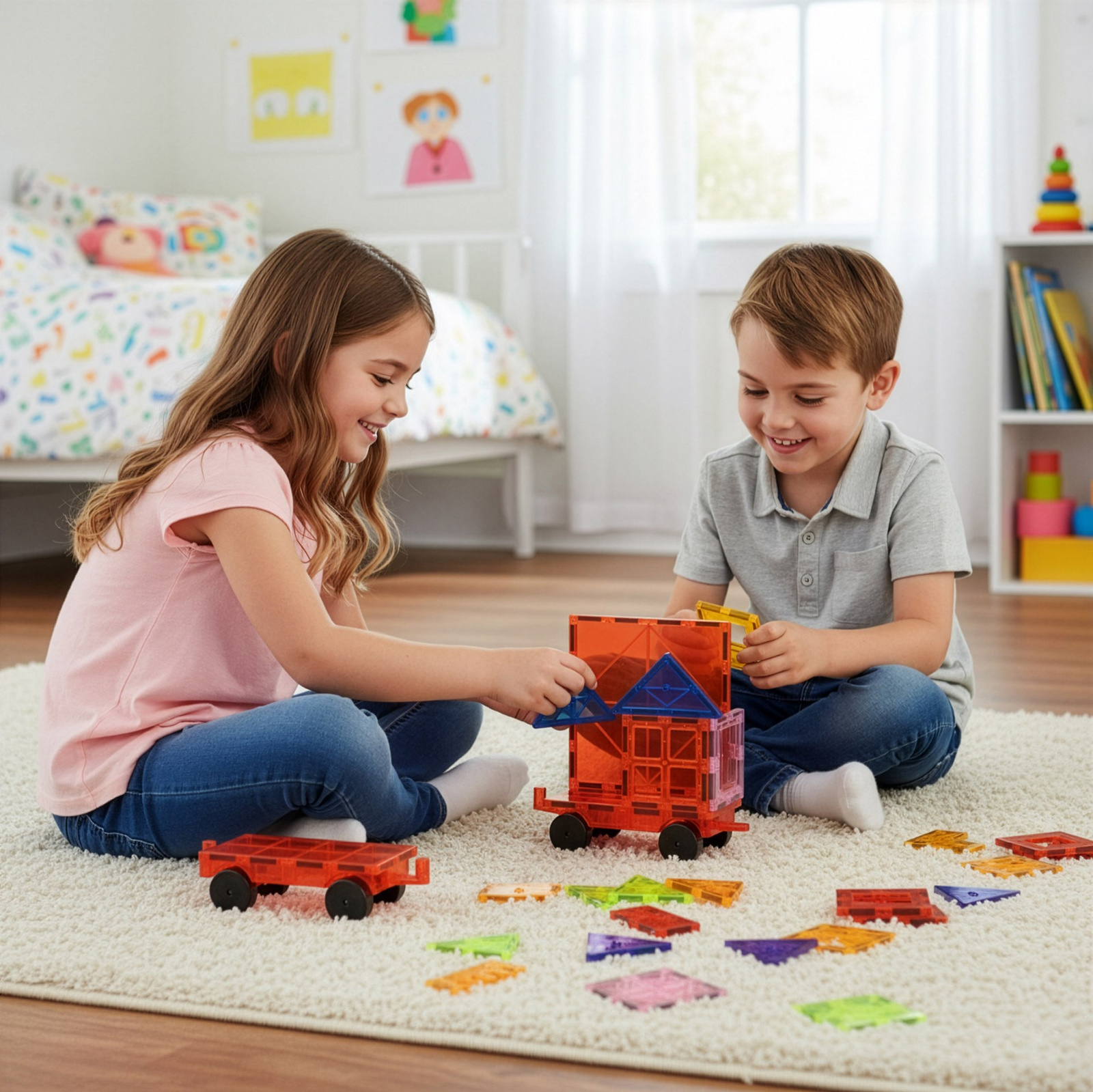 Klocki magnetyczne 120 sztuk to prawdziwy hit i bezsprzecznie najpopularniejsza zabawka tego roku. Komplet łączy prostotę użytkowania z ogromem możliwości konstrukcyjnych. Dwa dołączone podwozia pozwalają budować dynamiczne auta do zadań specjalnych. Pozostałe elementy posłużą do wznoszenia ścian, przytulnych domków i imponujących wież. Magnesy prowadzą elementy na swoje miejsce, dzięki czemu konstrukcje powstają szybko i trzymają formę. Dzieci spontanicznie uczą się zasad równowagi i symetrii. Intensywne kolory zachęcają do eksperymentów i mieszania wzorów. Zestaw sprzyja długim sesjom twórczej zabawy bez ekranów. Konstrukcje mogą tworzyć ulice, place i parkingi, po których mkną pojazdy. Dwa podwozia dają możliwość budowy jednocześnie dwóch samochodów, co zwiększa radość ze wspólnej zabawy. Elementy wygodnie się łączą i nie wyślizgują z dłoni. Każde rozłożenie i ponowne złożenie to nowa lekcja cierpliwości i wytrwałości. Zabawka rośnie wraz z umiejętnościami, bo z czasem powstają coraz bardziej śmiałe projekty. Budowanie domków uczy planowania przestrzeni i przewidywania skutków zmian. Wieże sprawdzają stabilność, a ich przewrócenie motywuje do szukania lepszych rozwiązań. Auta mogą pełnić rolę straży, kuriera lub pojazdu budowlanego, zależnie od scenariusza zabawy. Zestaw nie wymaga skomplikowanych instrukcji, więc dzieci szybko przechodzą do działania. Po zabawie łatwo utrzymać porządek, bo elementy zgrabnie mieszczą się w pudełku. To prezent, który nie nudzi się po pierwszym dniu i wciąż inspiruje do nowych prób. Jeżeli cenisz kreatywność, trwałość i uniwersalność, ten komplet świetnie spełni oczekiwania całej rodziny.