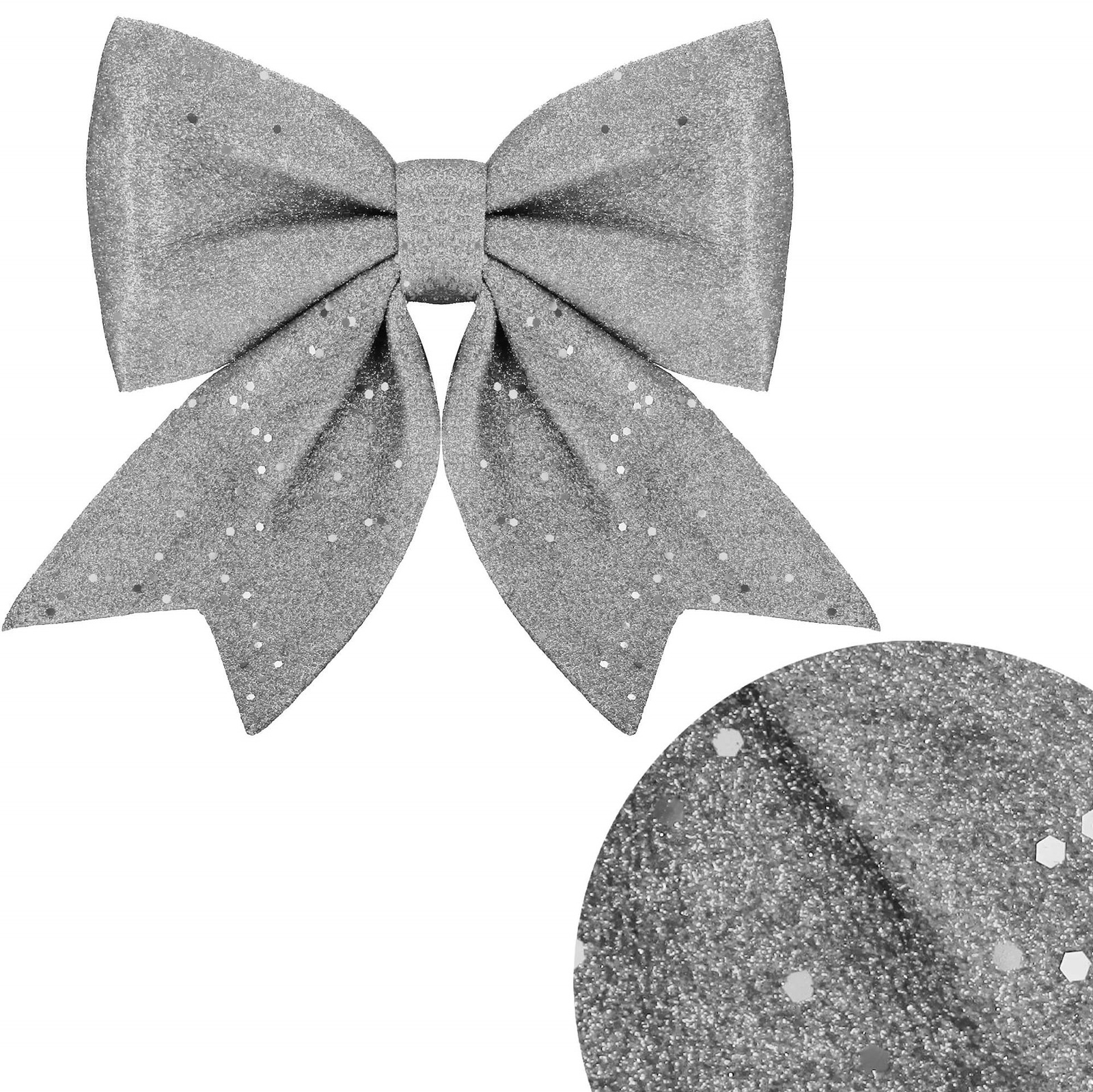 Opinie o Kokardka świąteczna na choinkę brokatowa zawieszka choinkowa srebrna