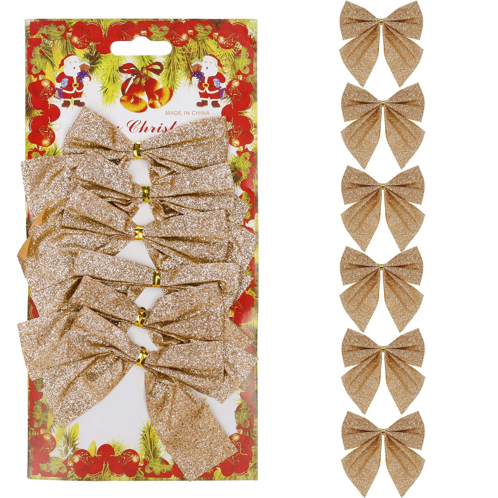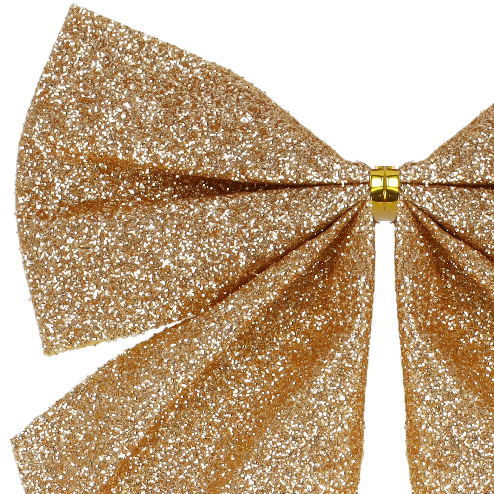 Opinie o Kokardki świąteczne na choinkę 6 szt. brokatowe zawieszki choinkowe złote