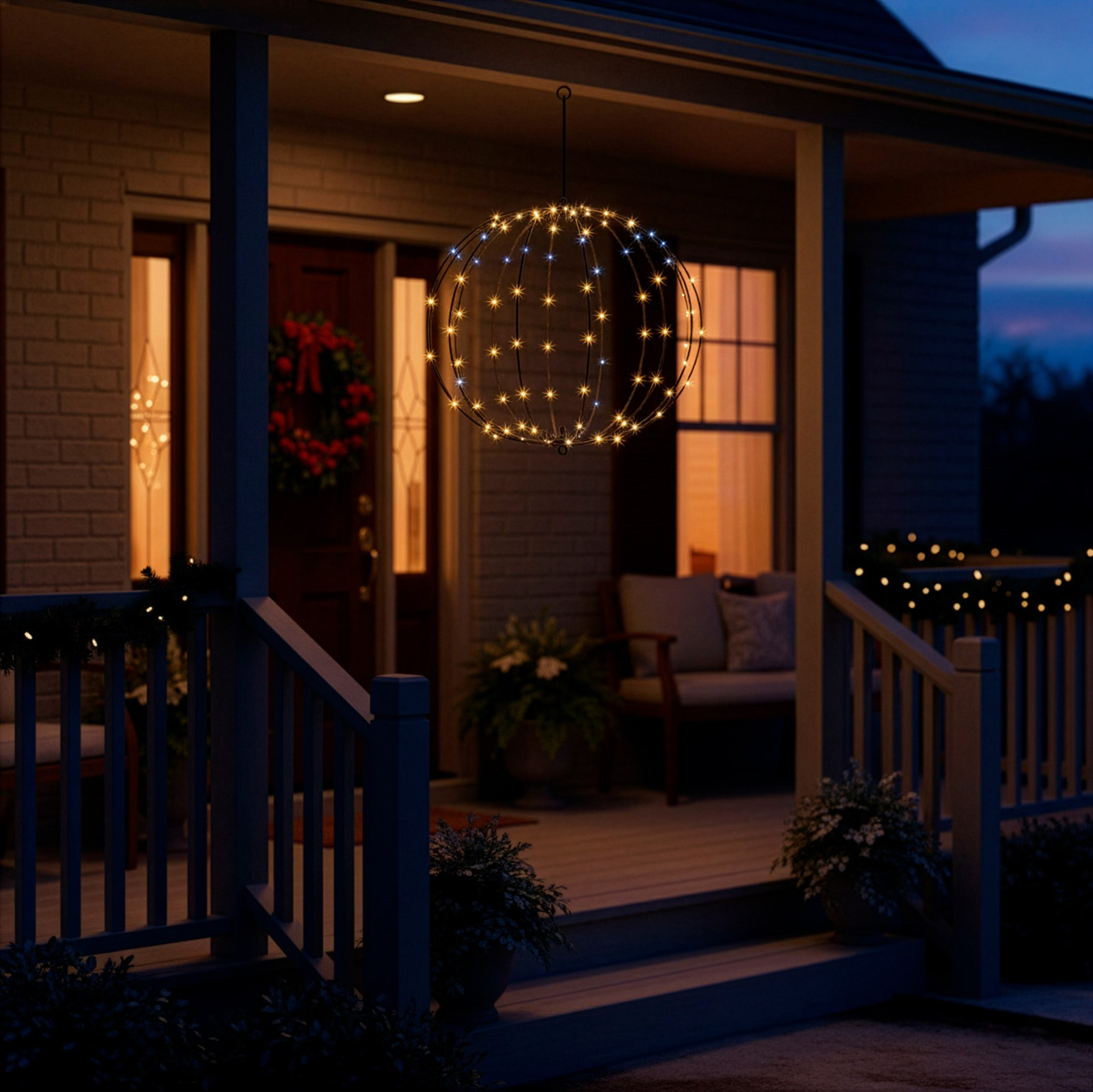 Kula świetlna o średnicy idealnej do dekoracji ogrodowych i tarasowych to efektowny sposób na rozświetlenie zimowego otoczenia. Wyposażona w 112 diod LED o ciepłej barwie emituje subtelne światło, które tworzy wyjątkowo przyjemny nastrój. Świetnie wygląda zawieszona na drzewie, przy altanie, na balkonie. Kula odporna jest idealna do stosowania w różnych warunkach pogodowych. Jej delikatny blask wprowadza aurę spokoju, radości i domowego ciepła. Ciepłe światło doskonale współgra z zielenią iglaków i zimowym krajobrazem. Dzięki prostej instalacji można ją zamontować w kilka chwil i natychmiast cieszyć się efektem. Energooszczędna technologia LED pozwala na długie użytkowanie przy minimalnym zużyciu energii. To dekoracja, która nie wymaga dużego nakładu pracy, a daje spektakularny rezultat wizualny. Kula doskonale sprawdzi się podczas świątecznych spotkań, rodzinnych kolacji czy spokojnych wieczorów przy kominku. Jej światło ociepla otoczenie i sprawia, że każda przestrzeń staje się bardziej nastrojowa. To ozdoba, która łączy estetykę z funkcjonalnością i stanowi piękne dopełnienie zimowych aranżacji. Dzięki niej nawet najprostszy ogród zamienia się w bajkowe, świetliste miejsce.