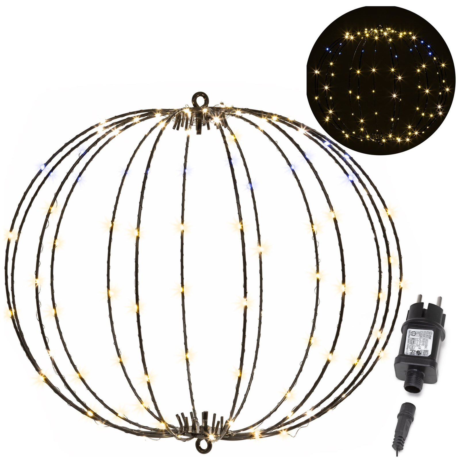 Kula świąteczna do ogrodu 112 LED bombka IP44 ciepły biały + biały flash